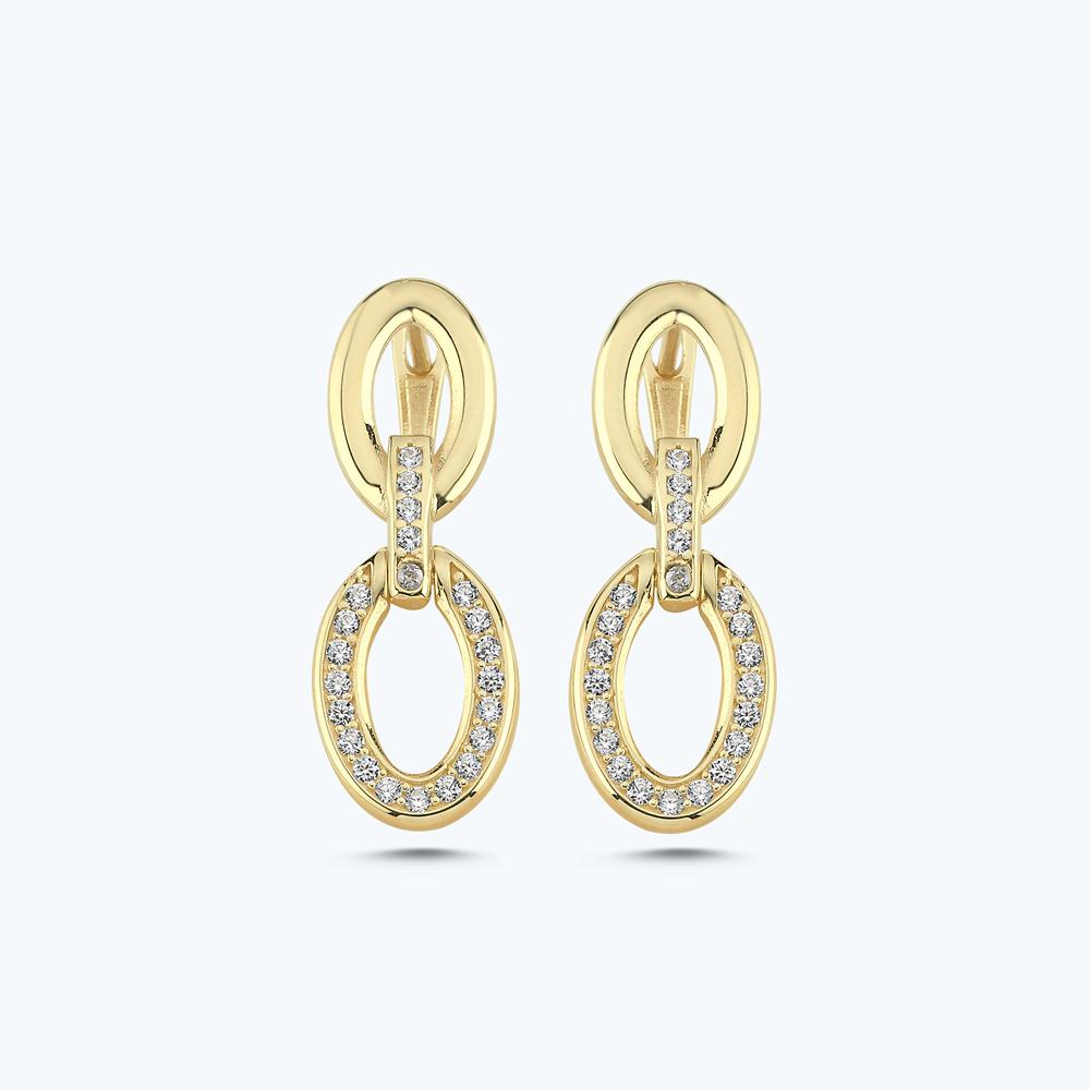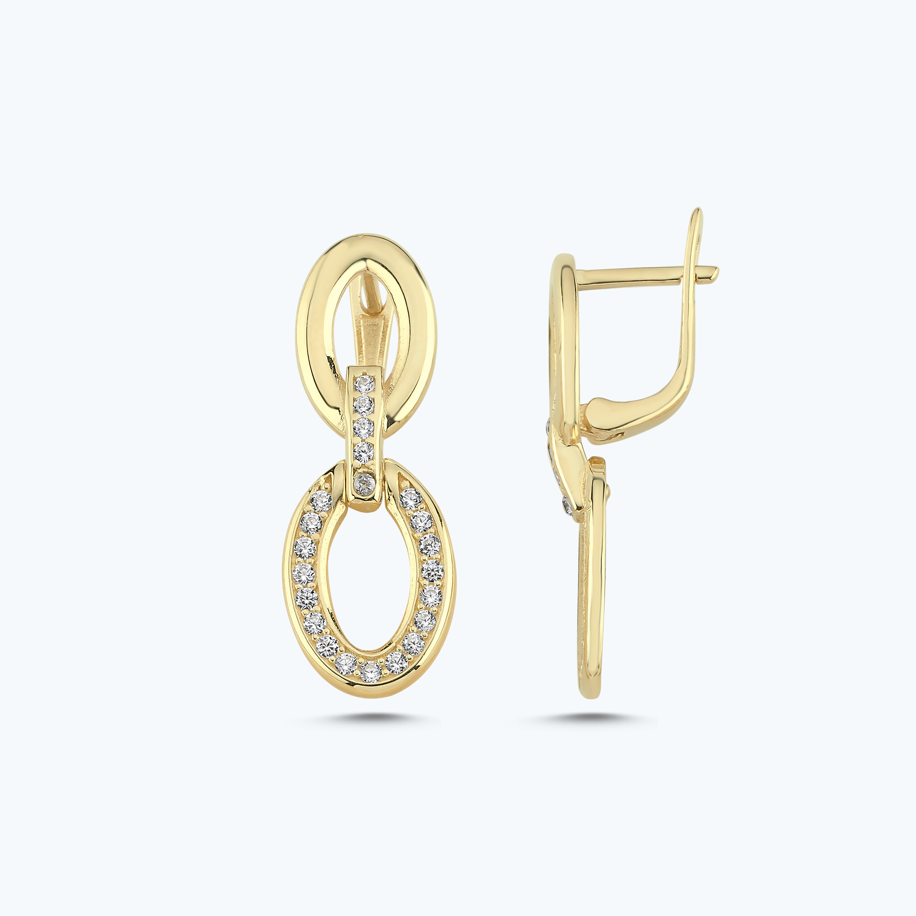 Homepage > > New Arrivals > Gold Dangling Oval Earrings with Stone