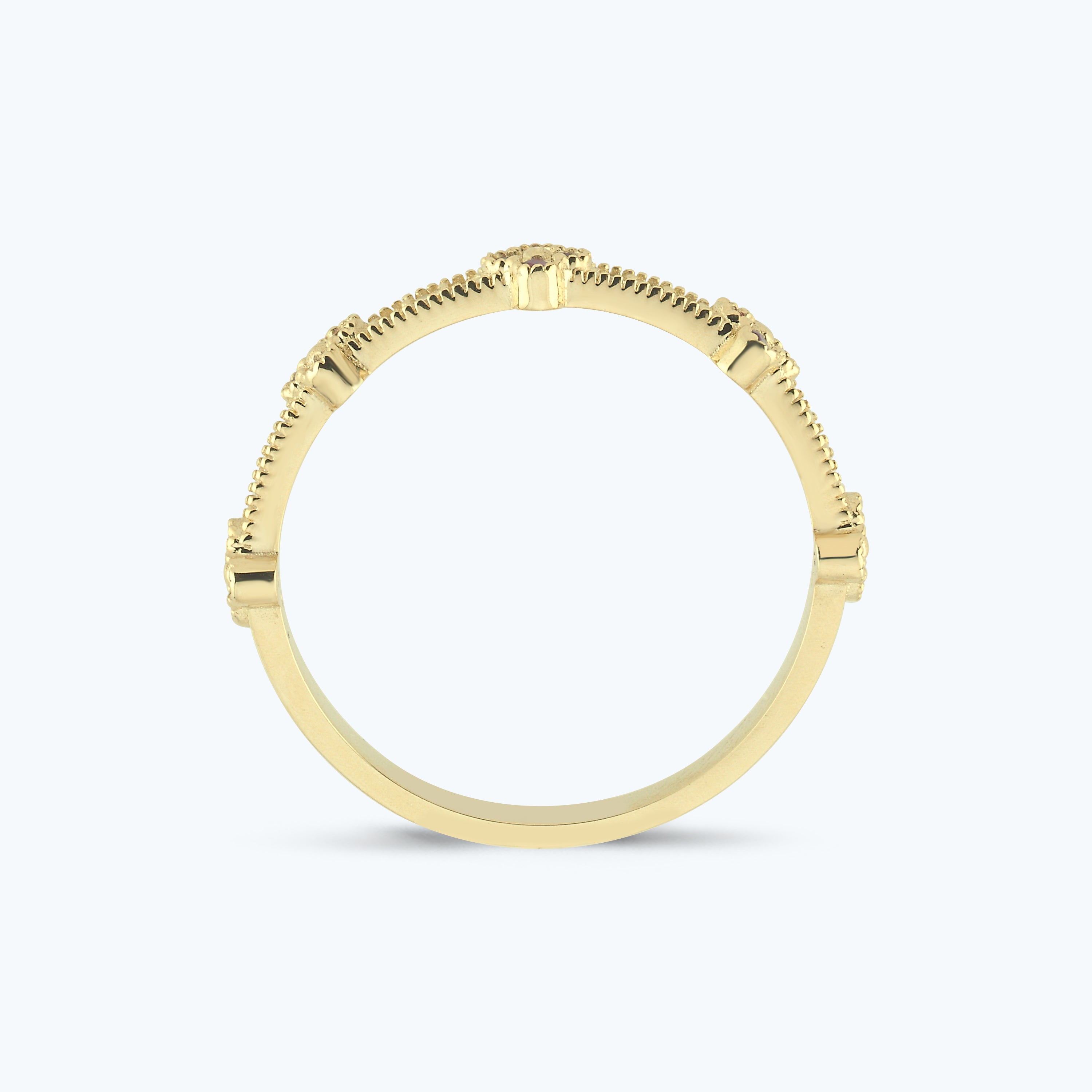 Flower Gold Ring with Red Stone