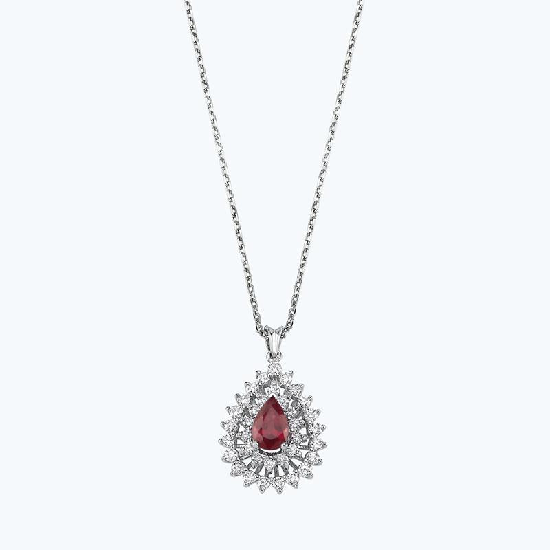 Homepage > > Necklaces > Diamond Ruby Pear Pendant