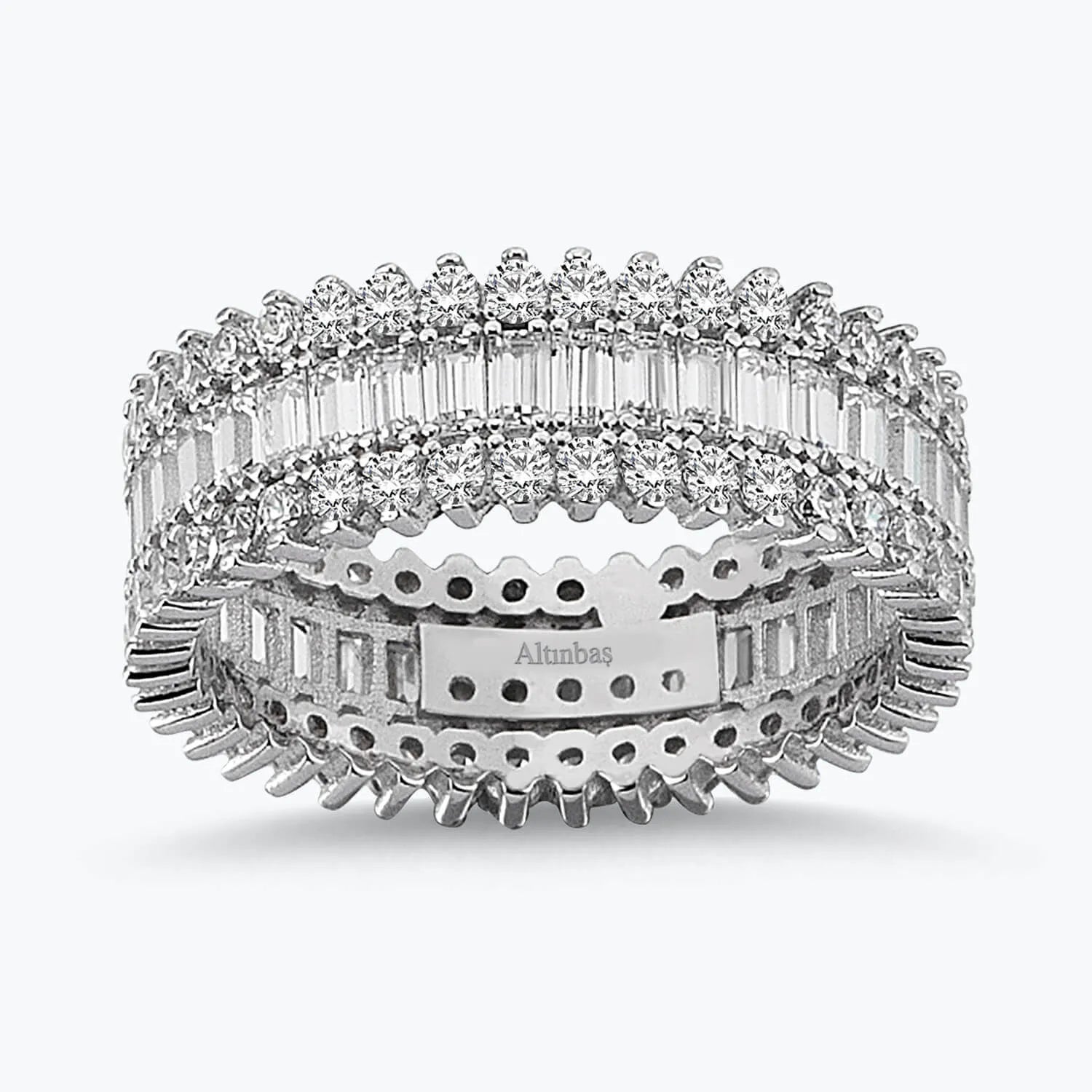 Immerse yourself in the sheer elegance of Altınbaş Jewellery's Eternity Gold Ring. This exquisite piece is a true testament to the grandeur and sophistication that our luxury brand represents. Crafted from 14K white gold, this ring is an undeniable manifestation of wealth and prestige, exuding an opulent aura that is hard to overlook. The ring is thoughtfully designed with a series of Cubic Zirconia baguettes, each one meticulously set to create a stunning display of sparkle and brilliance. The baguette cut is renowned for its geometric elegance, and when combined with the luminosity of Cubic Zirconia, it creates a visual spectacle that is truly mesmerising. The Eternity Gold Ring is not just a piece of jewellery; it's a symbol of an endless journey of togetherness. The continuous loop of the ring, adorned with a never-ending line of sparkling stones, signifies eternal love and the unbroken bond between two souls. This makes it an ideal gift for commemorating special occasions or expressing your unending affection for your loved one. This ring has been perfectly curated for the stylish woman, one who appreciates the fusion of timeless elegance and contemporary design. The intricate detailing and exceptional craftsmanship make it a versatile piece that can be worn on its own for a subtle statement or paired with other accessories for a more glamorous look. Experience the luxury and sophistication of Altınbaş Jewellery with the Eternity Gold Ring. It's more than just a piece of jewellery; it's a symbol of everlasting love and a testament to your impeccable taste.