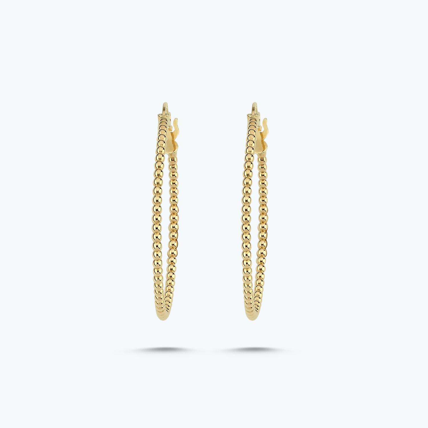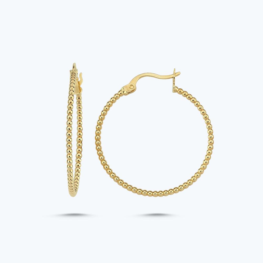 Introducing Altınbaş Jewellery's exquisite Hoop Gold Earrings, a true expression of timeless beauty. Crafted with the utmost precision, these earrings are a testament to the sophistication and quality that Altınbaş Jewellery is renowned for. Each pair of earrings is meticulously created from 14K yellow gold, a material that is not only strikingly beautiful but also known for its durability and long-lasting shine. The choice of 14K gold ensures that these earrings will maintain their elegance for years to come, making them a truly valuable addition to your jewellery collection. The design of these earrings is inspired by the classic hoop style, a design that has stood the test of time and continues to be a favourite among jewellery lovers. The hoop design is not only aesthetically pleasing but also versatile, making these earrings suitable for both formal and casual occasions. These earrings are crafted without stones, a feature that further enhances their timeless appeal. The absence of stones allows the beauty of the 14K yellow gold to shine through, creating a look that is both simple and sophisticated. Designed specifically for women, these Hoop Gold Earrings are a perfect gift for yourself or a loved one. They are a celebration of femininity, adding a touch of elegance to any outfit. In the world of fashion, trends may come and go, but the beauty of gold remains timeless. These Hoop Gold Earrings from Altınbaş Jewellery embody this timeless beauty, offering a classic style that will never go out of fashion. Invest in these Hoop Gold Earrings and experience the joy of owning a piece of luxury jewellery that is both beautiful and enduring.
