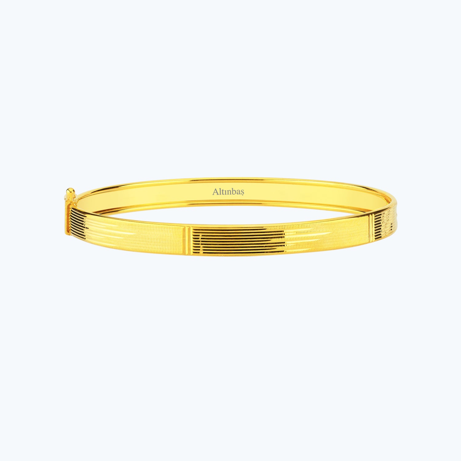 Indulge in the elegance of pure luxury with the Altınbaş 22K Gold Bangle. This stunning piece, meticulously crafted from the finest 22K gold, embodies the essence of sophistication and quality that Altınbaş Jewellery is renowned for. The bangle's vibrant yellow hue mirrors the brilliance of the sun, making it a radiant addition to any jewellery collection. Its lustrous finish reflects light in the most enchanting manner, creating a captivating play of gleam and shadows that is sure to garner admiration. This bangle, devoid of any stones, allows the sheer beauty of the gold to take centre stage. The simplicity of its design is its greatest strength, offering a timeless appeal that transcends fleeting fashion trends. It is a testament to the enduring allure of gold, a metal cherished for its intrinsic value and aesthetic appeal. The 22K Gold Bangle is a versatile piece that can be worn with both casual and formal outfits, adding a touch of glamour to any ensemble. It is a perfect choice for those who appreciate the finer things in life and prefer understated elegance over ostentatious display. Wear it alone for a minimalist look, or pair it with other pieces from Altınbaş’s collection to create a personalised style statement. Regardless of how you choose to wear it, this 22K Gold Bangle is sure to enhance your natural beauty and express your unique personality. Invest in this timeless piece from Altınbaş Jewellery and experience the joy of owning a piece of jewellery that is not just an accessory, but a work of art.