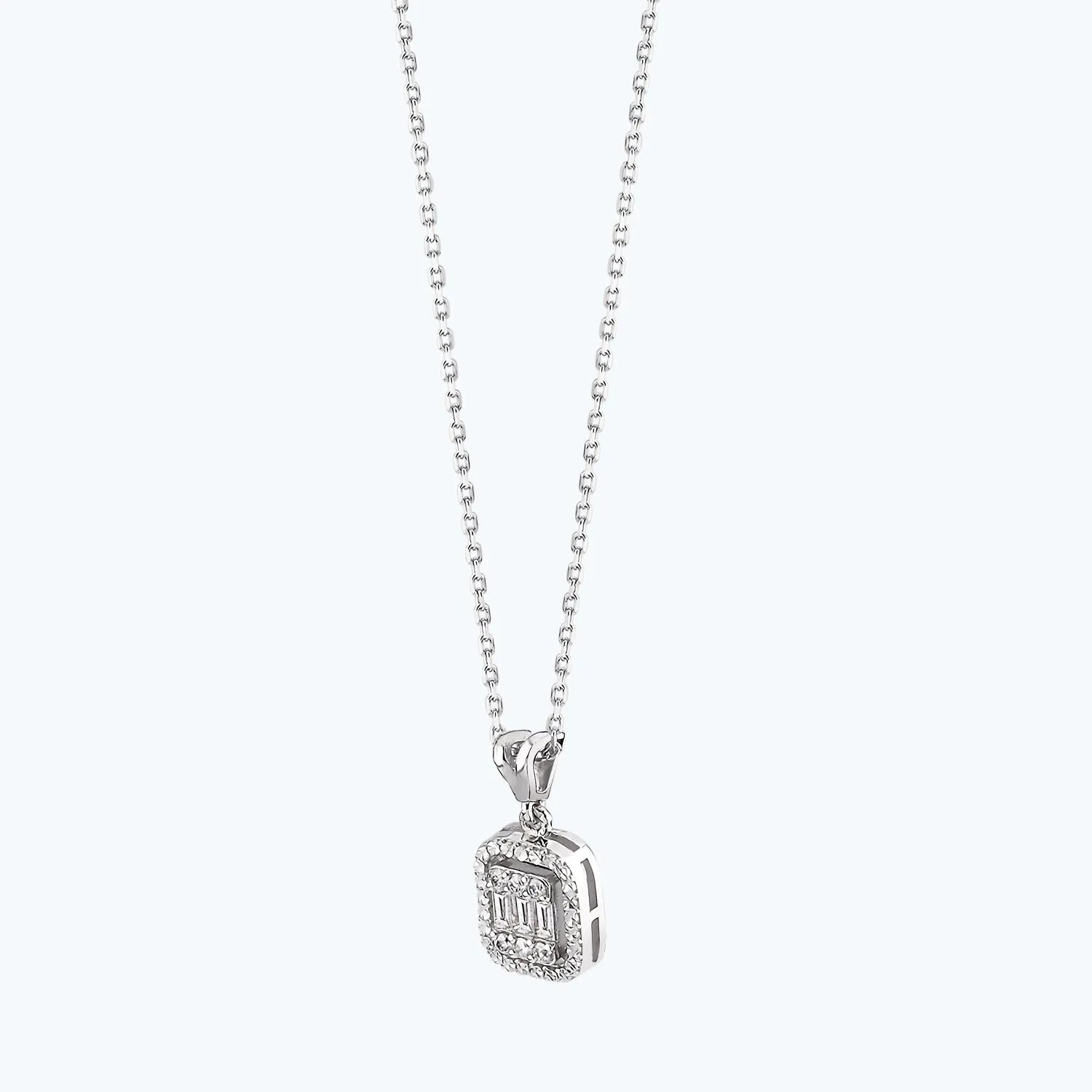 Introducing the Baguette Diamond Necklace from Altınbaş Jewellery, a symbol of luxury and sophistication. This exquisite piece is part of our coveted Wedding Collection, designed to celebrate love and commitment. Expertly crafted from 8K white gold, this necklace is an embodiment of elegance that complements your style with grace and charm. The Baguette Diamond Necklace is not just a piece of jewellery, but a representation of your love for the most valuable person in your life. With each diamond meticulously set, it reflects the time and dedication invested in a relationship, making it an ideal choice to celebrate your special moments. This necklace features baguette diamonds, known for their elongated, rectangular shape that showcases the clarity and brilliance of the stones. The unique design of this necklace, with its linear diamond pattern, provides a modern twist on the classic diamond necklace. At Altınbaş Jewellery, we believe in creating pieces that are not only beautiful but also meaningful. This necklace is a harbinger of good fortune, designed to bring positivity and prosperity to the wearer. The sparkle of the diamonds, combined with the purity of the white gold, creates a piece that is as unique and precious as the person wearing it. Every piece of jewellery from Altınbaş is crafted with precision, ensuring the highest quality and attention to detail. The Baguette Diamond Necklace is no exception, reflecting pure elegance in its design and craftsmanship. Invest in this timeless piece from Altınbaş Jewellery, and let it be a testament to your love and commitment. This Baguette Diamond Necklace is more than just a piece of jewellery; it's a symbol of love, fortune, and elegance that will be cherished for a lifetime.