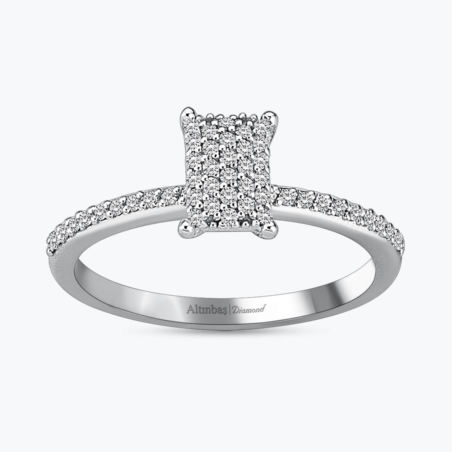 Introducing Altınbaş Jewellery's exquisite Diamond Engagement Ring, a piece that is more than just a ring. It's a symbol of love, respect, and the power of making a promise. This dazzling piece from our Wedding Collection is meticulously crafted in 8K white gold, a metal known for its warmth and glow, enhancing the brilliance of the round diamond that takes centre stage. Each diamond on this ring has been handpicked for its exceptional quality, ensuring that your ring exudes class and charm. The round diamond is encircled by side stones, creating an endless cycle of glamour that is bound to captivate and impress. The engagement ring is more than just an accessory; it is a testament to your unique love story. It is a token of your promise, a promise that is as enduring and timeless as the ring itself. The side stones on the ring not only enhance the beauty of the central diamond but also signify the journey you are about to embark on, a journey filled with love, companionship, and shared dreams. This ring is not just a piece of jewellery; it's a memory, a moment, a promise wrapped in the form of a beautiful ring. Its timeless elegance and sophistication make it a gift to be cherished forever, a constant reminder of the love and commitment you share. So, make your proposal unforgettable with this exquisite diamond engagement ring. It's more than just a ring; it's a symbol of your promise to cherish, respect, and love each other forever. With this ring, you're not just giving a piece of jewellery; you're giving a lifetime of memories. Altınbaş Jewellery, where every piece tells a story of love, commitment, and a promise of a lifetime.