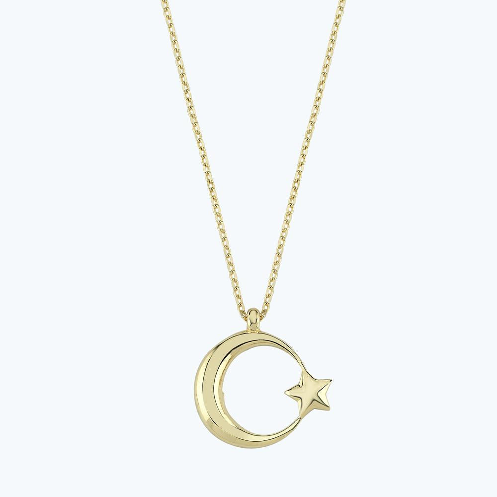 Homepage > Jewellery > Necklaces > Gold Crescent and Star Necklace