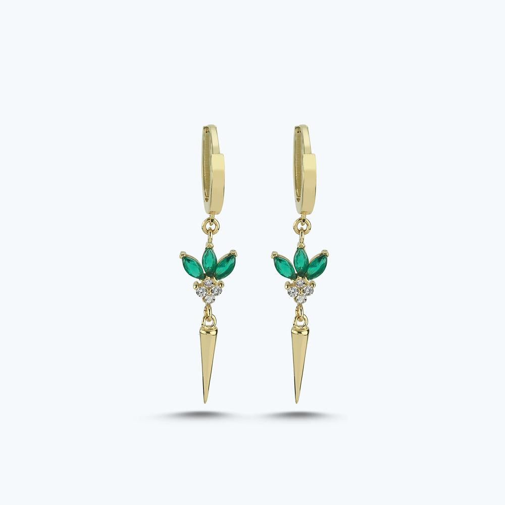 Homepage > Jewellery > Earrings > Dangling Gold Hoop Earrings with Green Stone