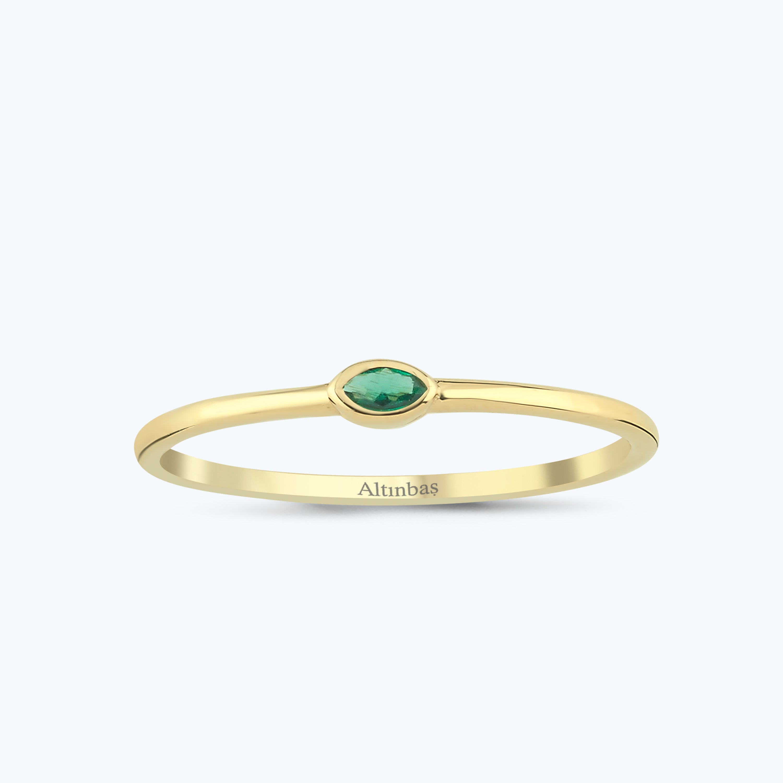 Homepage > > Cubic Zirconia > Gold Marquise Ring with Green Stone