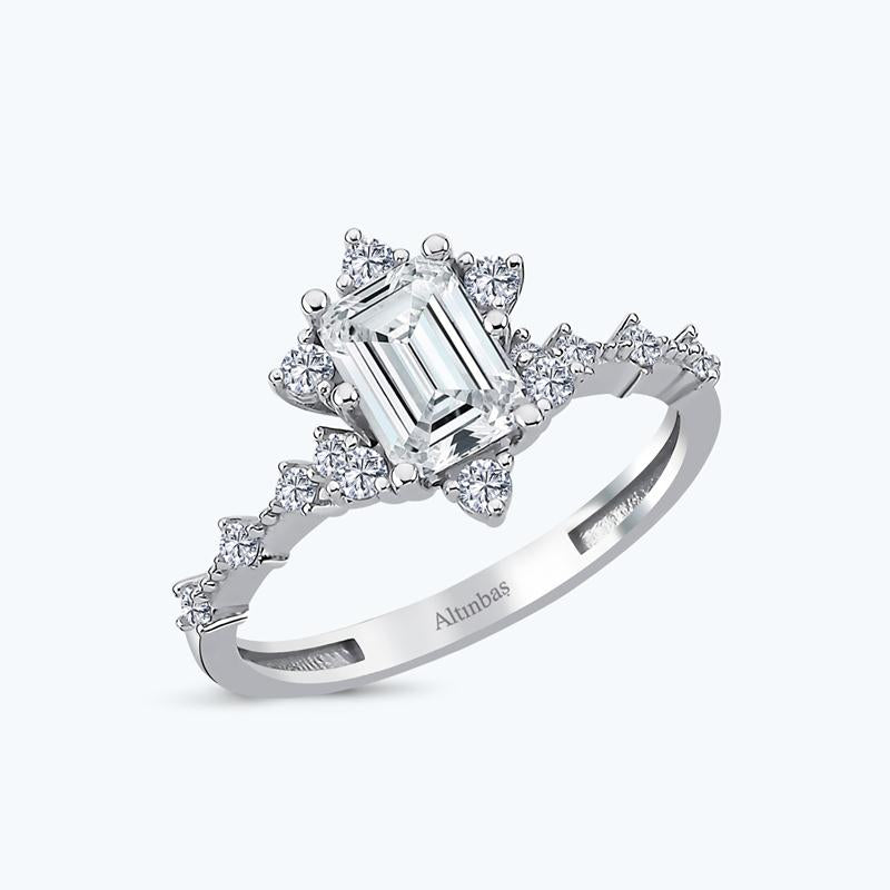 Introducing the Baguette Gold Ring from Altınbaş Jewellery, a symbol of timeless grace and sophistication. This exquisite piece is crafted from lustrous 14K white gold, known for its durability and everlasting shine, making it a perfect choice for a ring that is meant to last a lifetime. The ring is adorned with a stunning Baguette cut cubic zirconia, a gemstone that radiates an unmatched brilliance. The side stone setting enhances the overall design, adding a unique charm to the piece. This ring is not just a piece of jewellery, it is a testament to the richness and class that Altınbaş embodies. The Baguette Gold Ring is more than just an accessory, it is a token of love that will last forever. It's the perfect way to celebrate your love, making it an ideal gift for anniversaries or engagements. Every time your loved one looks at this ring, they will be reminded of the special moments you have shared together. This ring is designed for women who appreciate the finer things in life. The elegance of the white gold combined with the sparkle of the cubic zirconia makes it a must-have for every jewellery collection. Whether it's worn everyday or saved for special occasions, this ring will always stand out. Choosing the Baguette Gold Ring from Altınbaş is not just buying a piece of jewellery, it is investing in a timeless piece that will continue to tell your love story for years to come. Let this ring reflect the timeless grace and enduring love that you share.