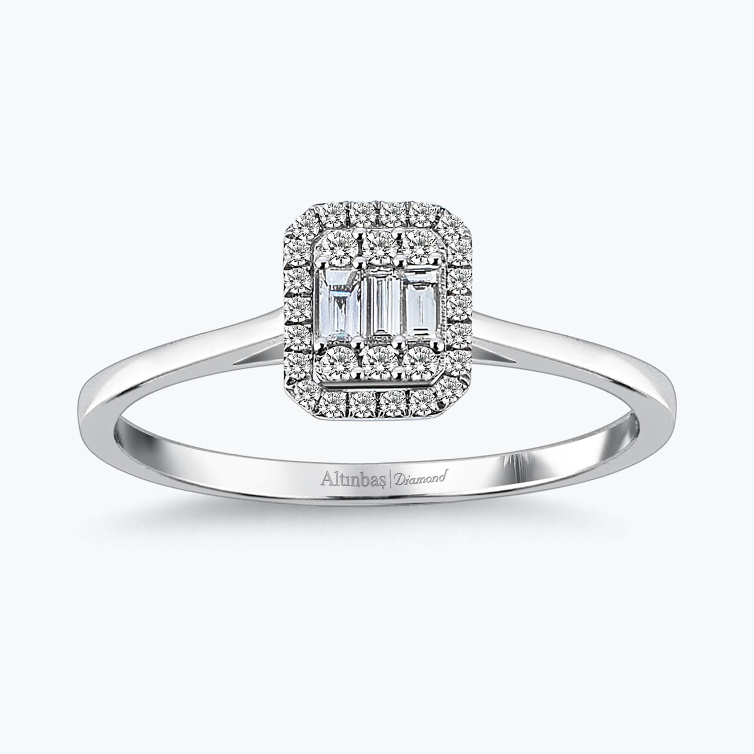 Introducing the Baguette Diamond Ring from Altınbaş Jewellery, a treasure of exquisite beauty that is designed to enhance the value of your special moments. This stunning piece is part of our exclusive Wedding Collection, crafted meticulously for women who appreciate the captivating allure of gold and the timeless charm of diamonds. This ring is expertly fashioned from 8K white gold, exuding a warmth and glow that emanates the energy of the sun. The luminous band is adorned with a halo of diamonds, each one carefully chosen for its brilliance and clarity. At the heart of the design is a baguette diamond, a symbol of purity and perfection that adds an extra touch of elegance and sophistication to the piece. The Baguette Diamond Ring is more than just a piece of jewellery; it's a representation of your love for the most valuable person in your life. Whether it's an engagement ring to mark the beginning of a new life together or a special gift to celebrate your enduring love, this ring is designed to make those moments truly unforgettable. With its enchanting design and exceptional craftsmanship, the Baguette Diamond Ring from Altınbaş Jewellery is a testament to our commitment to quality and elegance. It's not just a ring; it's a symbol of love, a token of commitment, and a treasure that will last a lifetime.