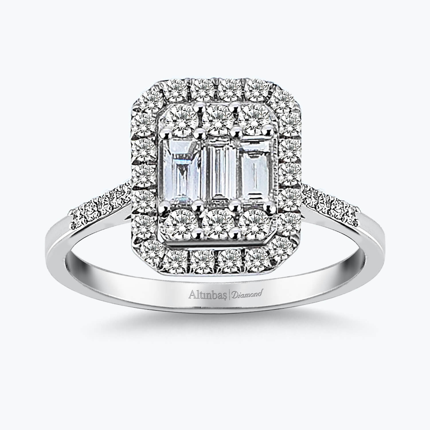 Introducing the Baguette Diamond Ring from Altınbaş Jewellery, a quintessence of sophistication and quality. Crafted meticulously with an extraordinary attention to detail, this ring is a true embodiment of luxury and elegance. Its centrepiece is a stunning baguette-cut diamond, a symbol of everlasting love and commitment. This extraordinary gemstone is set in a bed of pristine white gold, a testament to the unparalleled craftsmanship of our artisans. This ring is more than just a piece of jewellery; it's a celebration of the union of two hearts. The baguette diamond, with its elongated and rectangular shape, represents the journey of love, with all its highs and lows, twists and turns. It is a symbol of a love that is deep, enduring, and unbreakable. The white gold setting unveils the beauty of gold in its most pure and radiant form. It enhances the brilliance of the diamond, making it a perfect piece for a woman who values elegance and sophistication. This ring is a perfect choice for a proposal, symbolising a promise of a lifetime of love and togetherness. With this Baguette Diamond Ring, Altınbaş Jewellery offers a perfect blend of traditional craftsmanship and modern design. It's a piece that not only stands the test of time but also tells a story of love and commitment. This ring is not just a piece of jewellery; it's a promise of an everlasting bond. It's an expression of love that speaks volumes about your feelings for your significant other. It's a symbol of a love that's as deep and enduring as the diamond itself. When you choose this Baguette Diamond Ring, you're choosing a piece of jewellery that's as unique and beautiful as your love story. This ring from Altınbaş Jewellery, with its timeless elegance and sophistication, is sure to make her feel special and cherished, just like she deserves.