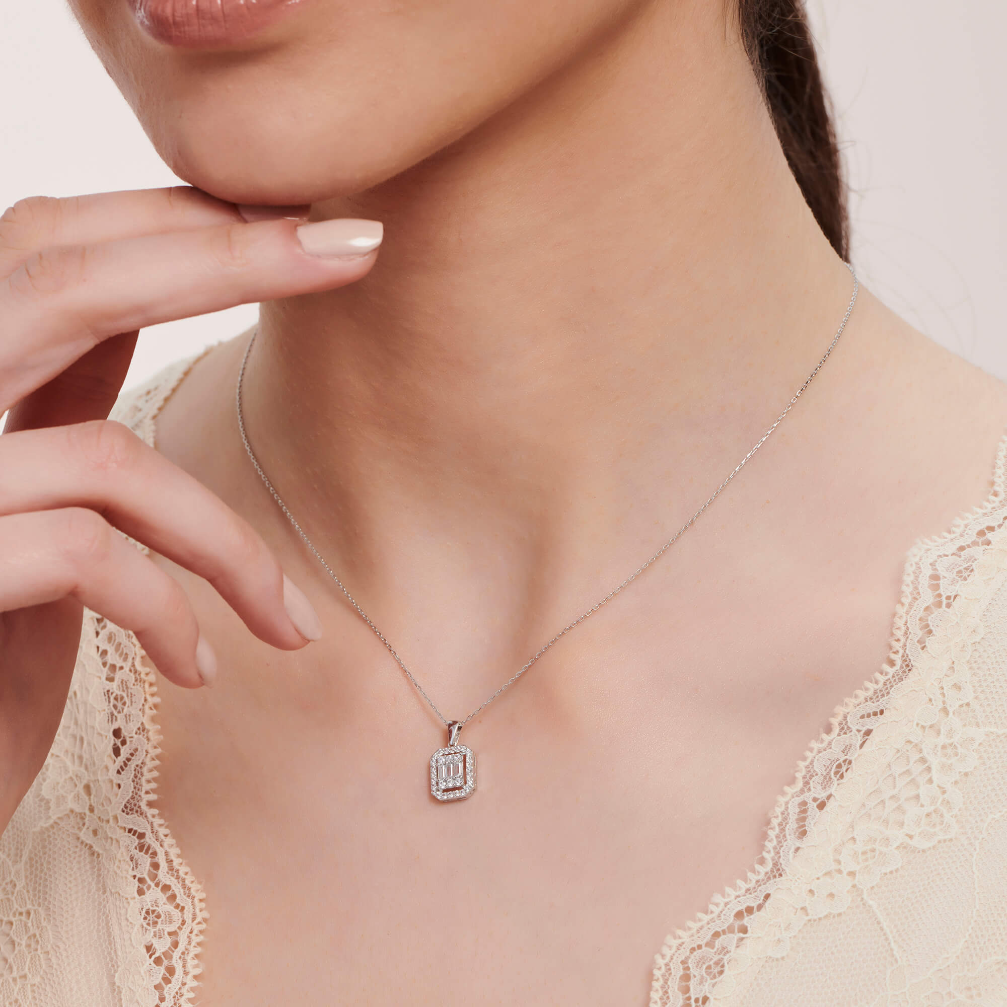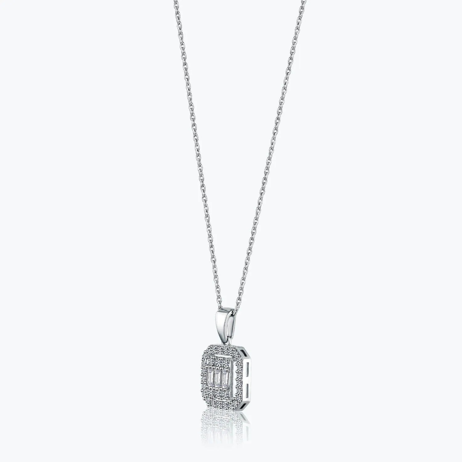 Introducing the Baguette Gold Necklace, a piece of luxury that embodies sophistication and quality, exclusively crafted by Altınbaş Jewellery. This exquisite necklace is a testament to the power of simplicity, striking a perfect balance between elegance and minimalism. It is more than just an accessory; it's a statement of purity and sanctity that enhances the beauty of the wearer. Artfully designed, this necklace is made from 14K white gold, a precious metal known for its durability and timeless appeal. The gold's radiant lustre is complemented beautifully by the sparkling cubic zirconia stones, meticulously set in a baguette style. The baguette cut, with its straight lines and angles, adds a modern edge to the necklace, making it a perfect blend of classic and contemporary styles. The Baguette Gold Necklace is an ideal gift for all occasions. Whether you're celebrating a birthday or looking for the perfect Mother's Day present, this necklace is sure to bring a smile to her face. It's not just a piece of jewellery; it's a token of love and appreciation that she can wear close to her heart. Every woman deserves to feel special, and this necklace is designed to do just that. It's a piece that speaks volumes about her style and elegance. It's versatile enough to be worn with any outfit, adding a touch of glamour to even the most casual look. At Altınbaş, we believe in creating jewellery that lasts a lifetime. We ensure that every piece we create meets the highest standards of quality and craftsmanship. So, when you choose the Baguette Gold Necklace, you're not just buying a piece of jewellery; you're investing in a timeless treasure. Experience the power of simplicity and purity with the Baguette Gold Necklace, a piece that truly embodies the essence of Altınbaş Jewellery.