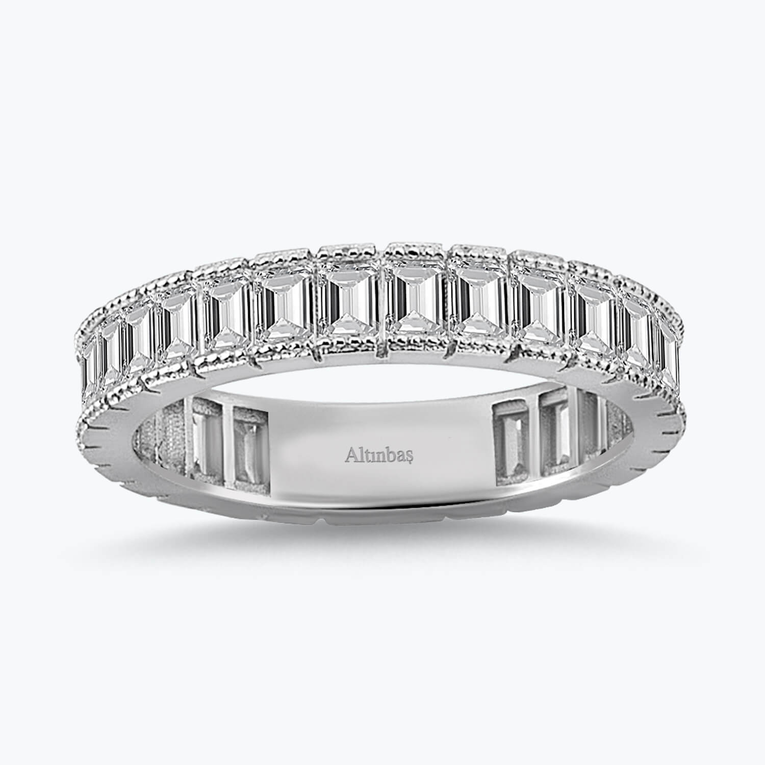 Introducing the Eternity Gold Ring from Altınbaş Jewellery, a stunning piece that perfectly captures the essence of sophistication and quality. Crafted from 14K white gold, this ring is not just an accessory, but a symbol of prosperity and success. It's a manifestation of sophistication, designed to add a dash of elegance and class to your everyday ensemble. The Eternity Gold Ring features a unique baguette design, adorned with a band of sparkling cubic zirconia. Each stone is meticulously set to create a stunning display of shimmer and shine. The brilliance of the cubic zirconia, combined with the lustrous white gold, creates a truly spectacular effect. The Eternity Gold Ring is more than just a piece of jewellery; it's an endless celebration of love. It symbolises eternal love and commitment, making it an ideal anniversary gift for that special someone. This ring is a testament to the enduring bond you share, a constant reminder of the love that binds you together. The beauty of this ring lies in its versatility. It's a perfect fit for any occasion, whether you're attending a formal event or just going about your day. The Eternity Gold Ring is a testament to Altınbaş Jewellery's commitment to creating pieces that are not only beautiful but also meaningful. Experience the joy of gifting or owning this exquisite piece of jewellery. The Eternity Gold Ring from Altınbaş Jewellery is more than just a ring; it's a symbol of love, prosperity, and sophistication.