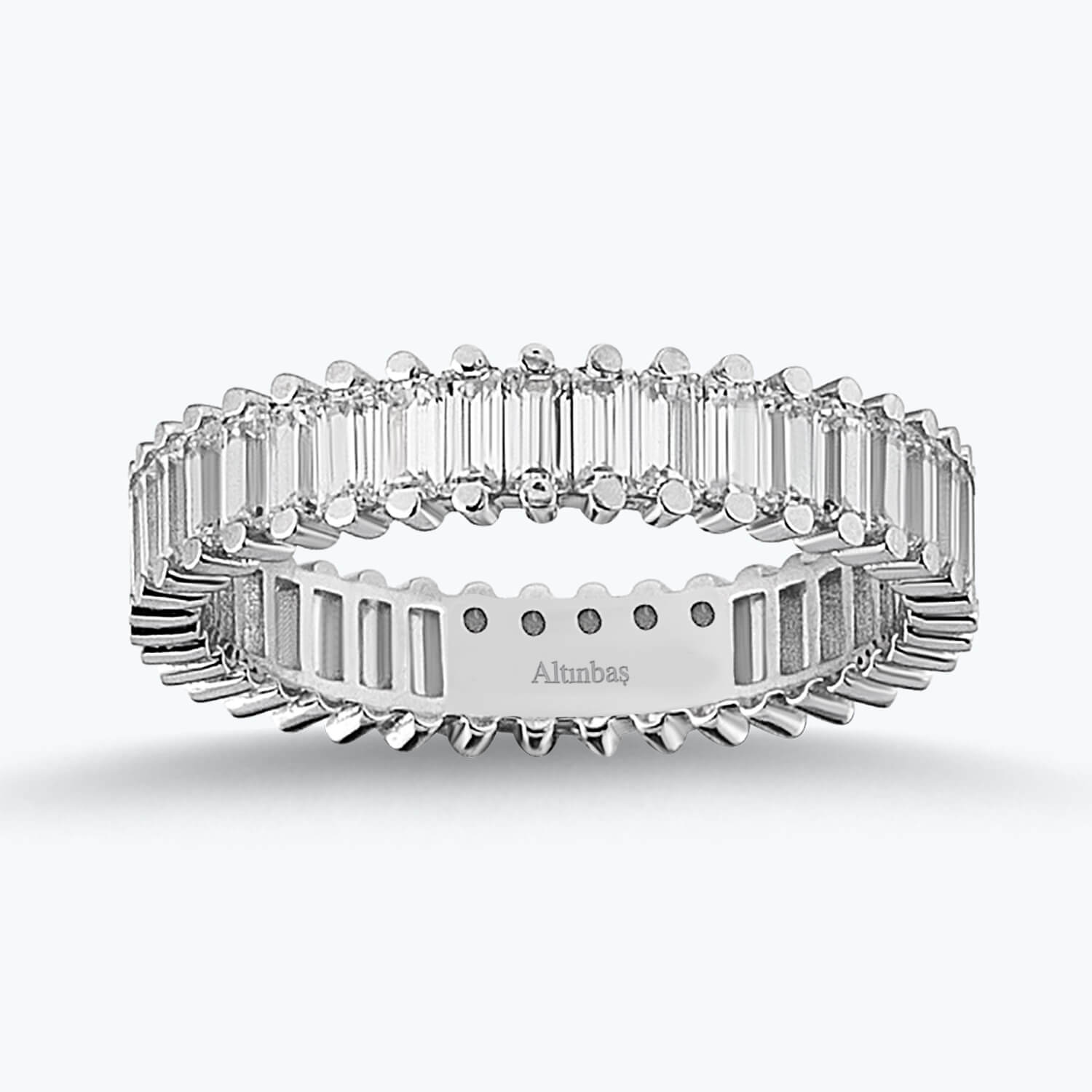 Discover the captivating allure of gold with Altınbaş Jewellery's Eternity Gold Ring. This exquisite piece is meticulously crafted from 14K white gold, a treasure that promises to last forever. The ring's radiant shine is truly mesmerising, reflecting the light in the most enchanting way possible, making it an irresistible addition to any jewellery collection. One of the most striking features of this ring is its baguette-cut cubic zirconia. Each stone is precisely cut and set, offering a dazzling display that beautifully complements the gleaming white gold band. The cubic zirconia lends a touch of elegance and sophistication, making this ring a delightful piece to adorn your fingers with. The design of the Eternity Gold Ring is inspired by the concept of infinity, a symbol that has been cherished for centuries. This ring is an endless representation of unity, making it an ideal choice for expressing everlasting love and commitment. The continuous circle of the ring, adorned with sparkling cubic zirconia, symbolises an unbroken bond, a promise that will never end. Perfect for women who appreciate the finer things in life, this gold ring is not just a piece of jewellery, but a statement of timeless elegance. Whether it's a gift for a loved one or a treat for yourself, the Eternity Gold Ring from Altınbaş Jewellery is a piece that will undoubtedly be cherished for a lifetime. Experience the luxury and sophistication that comes with owning an Altınbaş piece. The Eternity Gold Ring is not just a jewellery item, it's an investment in style and elegance. Let this stunning piece of jewellery add a touch of glamour to your everyday style, or make special occasions even more memorable. With its captivating allure and timeless design, this ring is truly a treasure that lasts forever.