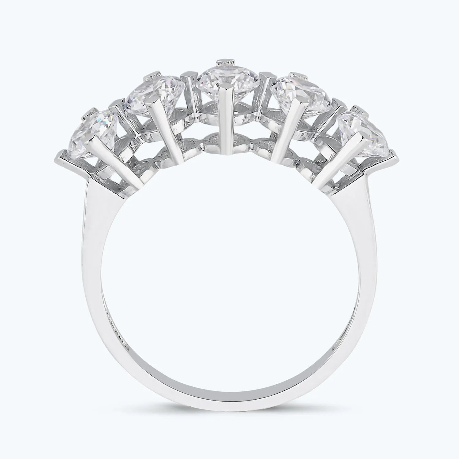 Introducing the 5 - Stone Gold Engagement Ring from Altınbaş Jewellery, a piece that truly encapsulates the captivating allure of gold. This exquisite ring is carefully crafted from 14K white gold, a testament to our commitment to using only the highest quality materials. Each of the five stones that adorn this ring is a round cubic zirconia, meticulously cut and set to display a radiant beauty that never fades. The eternal round of these stones is a symbol of the unending love and happiness that this ring represents. This engagement ring is more than just a piece of jewellery, it's a treasure that lasts forever, a tangible token of a promise made and a future to be shared. The gleaming white gold band serves as the perfect backdrop for the cubic zirconia stones, their sparkle enhanced by the contrast. The 5 - Stone Gold Engagement Ring is a perfect choice for those who appreciate the timeless elegance of gold and the dazzling brilliance of cubic zirconia. It's a ring designed to be as enduring as the love it signifies, a piece that will bring joy and happiness that lasts a lifetime. Whether you're planning a surprise proposal or choosing a ring together, this piece from Altınbaş Jewellery is sure to make the moment even more special. Each time you look at this ring, you'll be reminded of the love and commitment it represents. Experience the captivating allure of this 5 - Stone Gold Engagement Ring and let it be a part of your love story. With its eternal round of radiant beauty, it is an embodiment of the everlasting love and happiness that every couple deserves.