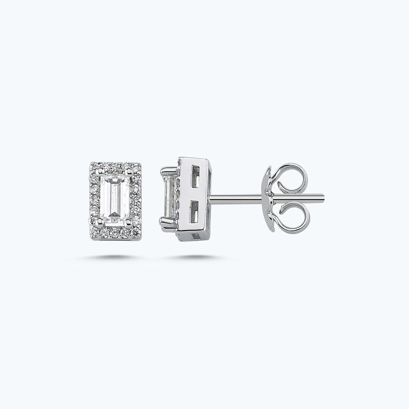 Introducing the Baguette Diamond Earring from Altınbaş Jewellery, a true symbol of eternal elegance. This exquisite piece is a testament to our dedication to sophistication and quality, designed to add a touch of luxury to every occasion. Crafted from premium 14K white gold, this earring is not just an accessory but a statement of style. The gold setting accentuates the brilliance of the baguette cut diamonds, enhancing their natural beauty and sparkle. Each diamond is meticulously selected for its quality, ensuring a stunning piece that embodies pure luxury. The baguette cut of the diamonds is a unique feature of this earring, offering a modern and sophisticated twist to traditional diamond jewellery. This cut is known for its clean lines and geometric shape, creating a striking visual appeal that is both timeless and contemporary. This earring is perfect for the discerning woman who appreciates the finer things in life. It's a piece that speaks volumes about her refined taste and her love for luxury. It's more than just jewellery - it's a statement, an expression of her personal style. Whether it is worn for a special occasion or as an everyday accessory, this Baguette Diamond Earring is sure to turn heads. It's a piece that exudes elegance and sophistication, making it a must-have for any jewellery collection. At Altınbaş Jewellery, we believe in creating pieces that are not just beautiful, but also of exceptional quality. This earring is a testament to our commitment to excellence, designed to last a lifetime and beyond. Invest in this Baguette Diamond Earring and experience the true essence of luxury. Because at Altınbaş Jewellery, we believe that every woman deserves to feel special, every day.
