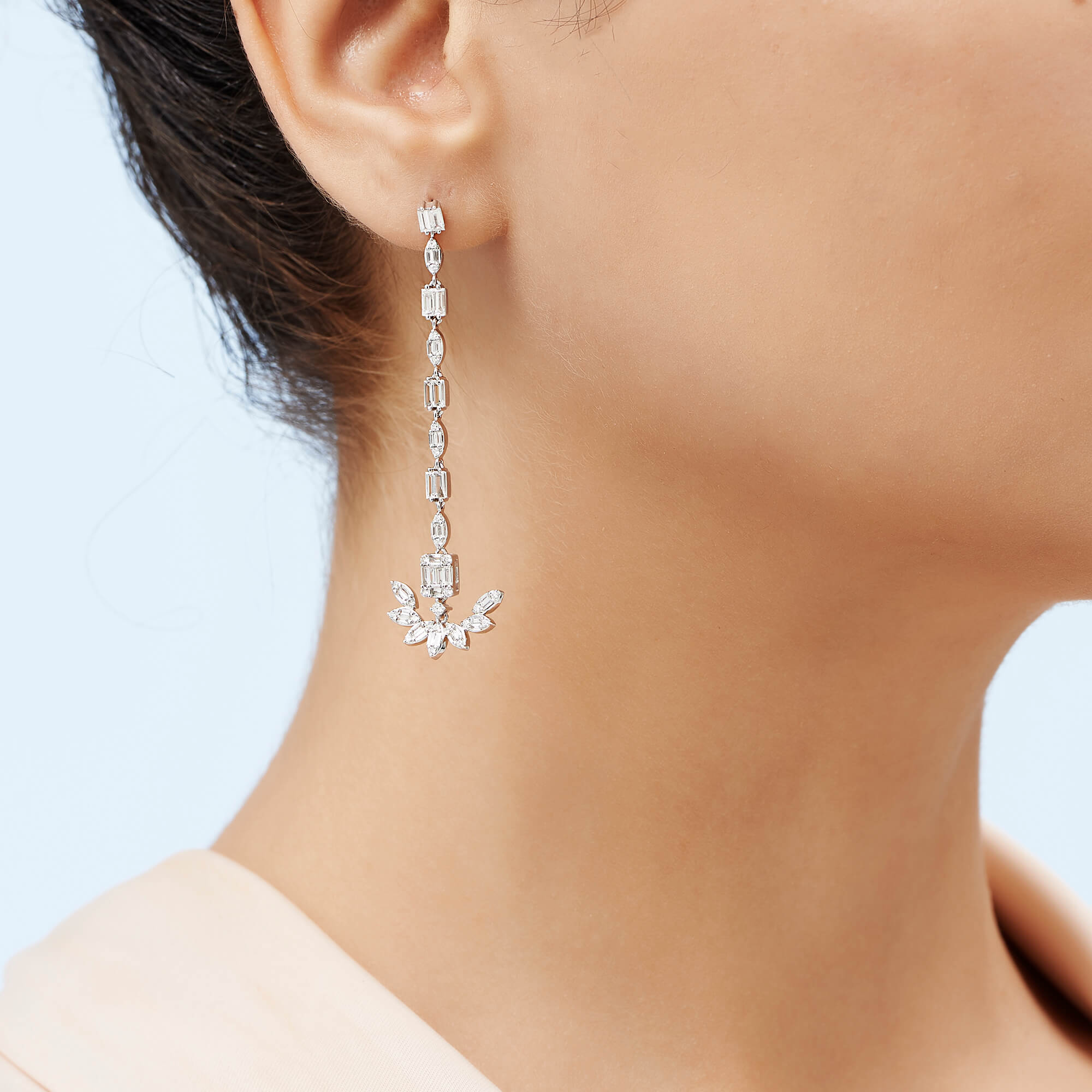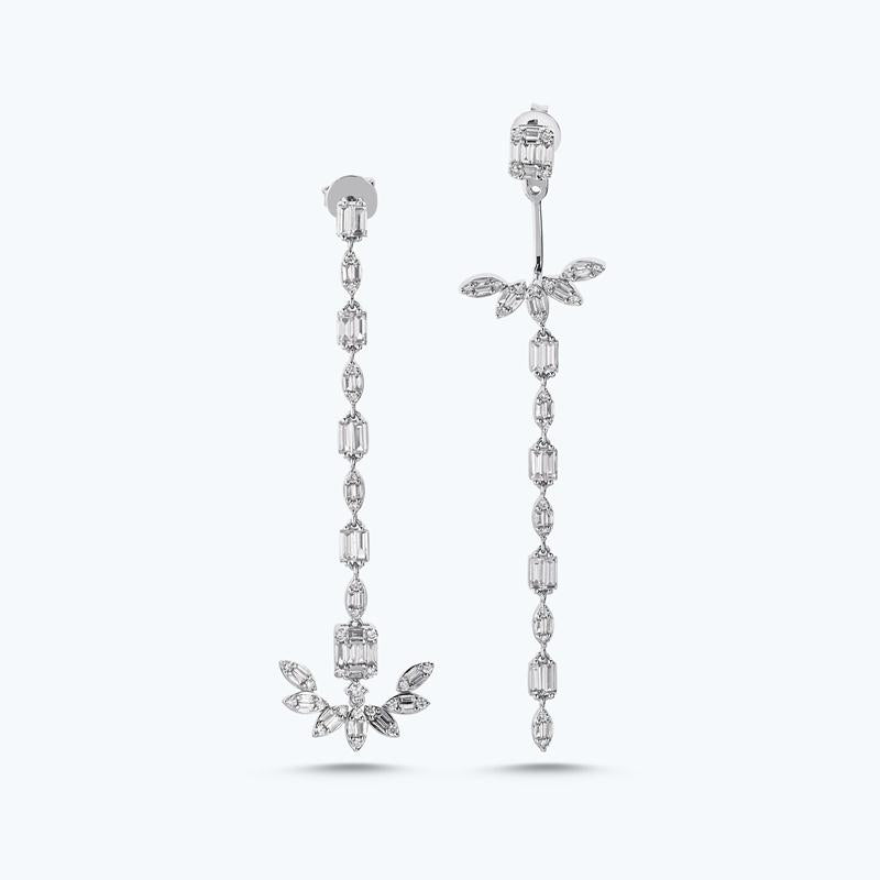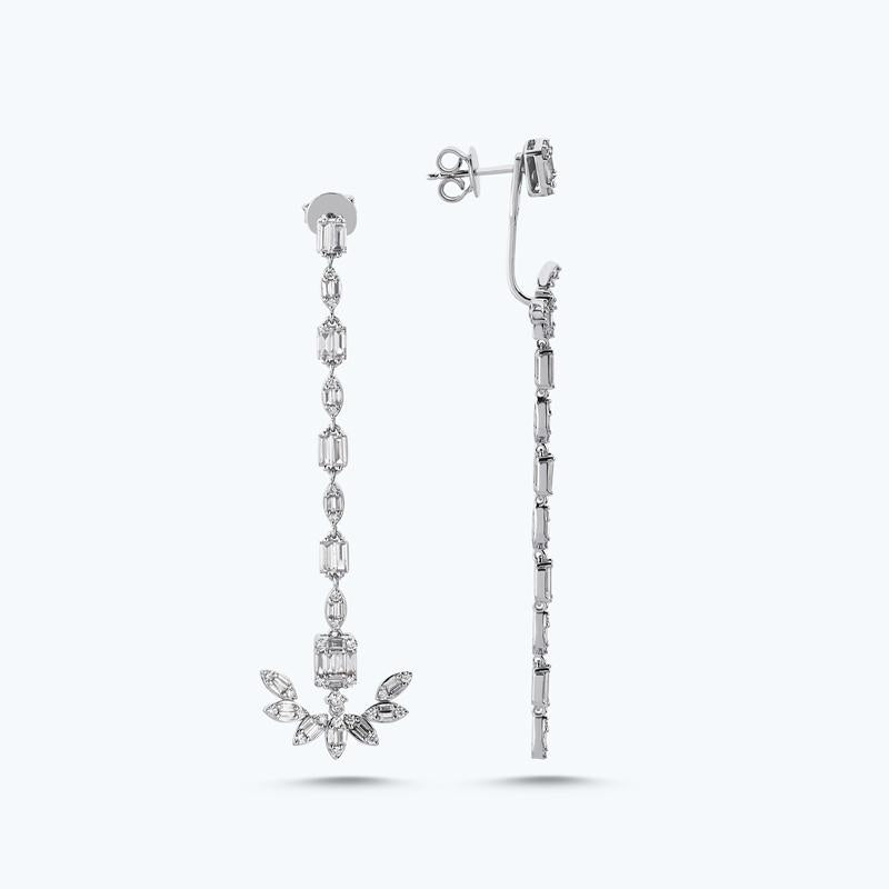 Introducing the Baguette Diamond Earrings from Altınbaş Jewellery, a sophisticated piece that radiates the energy of the sun. Crafted with the utmost attention to detail, these earrings are the perfect blend of elegance and brilliance. Each earring is meticulously crafted from 14K white gold, a material renowned for its durability and lustrous shine. The white gold beautifully complements the radiant diamonds, creating a luxurious piece of jewellery that is sure to turn heads. The highlight of these earrings is undoubtedly the baguette diamonds. Known for their elongated, rectangular shape, baguette diamonds are a symbol of timeless sophistication. They are intricately set in a dangle design, allowing the earrings to catch the light from every angle. The dangle style of these earrings adds an element of movement and playfulness. They sway gently with every step, drawing attention to the wearer's grace and elegance. These earrings are perfect for women who appreciate the finer things in life. They are a testament to the exquisite craftsmanship and quality that Altınbaş Jewellery is known for. Whether you're dressing up for a special occasion or adding a touch of glamour to your everyday look, these Baguette Diamond Earrings are a must-have addition to your jewellery collection. They are not just accessories, but pieces of art that emanate the energy of the sun and are intricately designed for a regal look. Experience the luxury and sophistication of Altınbaş Jewellery with these Baguette Diamond Earrings. They are more than just jewellery, they are a statement of style and elegance.
