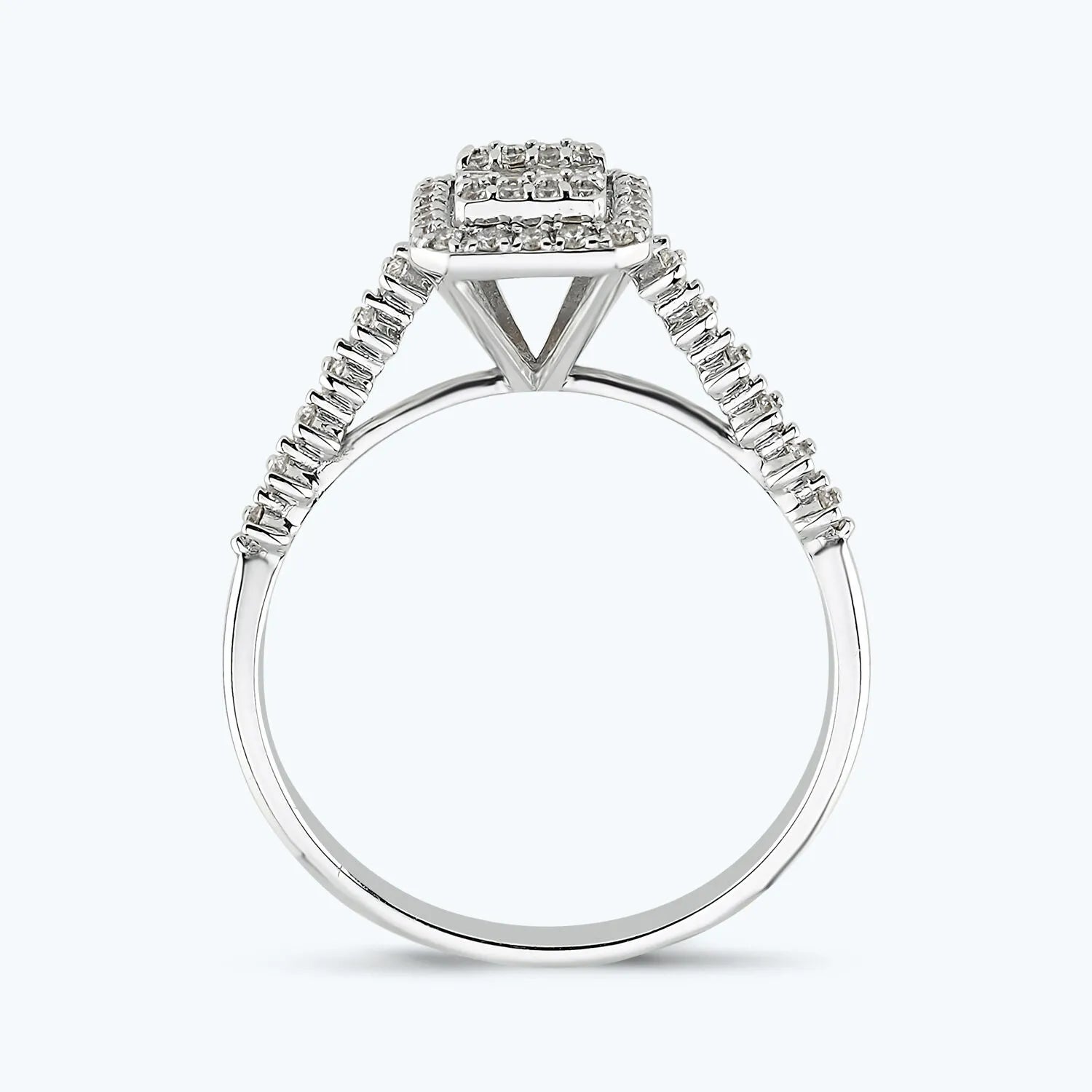 Introducing the Baguette Diamond Ring from Altınbaş Jewellery, a symbol of eternal elegance and sophistication. This exquisite piece, part of our esteemed Wedding Collection, is meticulously crafted from 14K white gold, a precious metal known for its durability and timeless appeal. Each ring is expertly designed to showcase the intricate details that make it a standout piece in any jewellery collection. At the heart of this stunning ring lies a dazzling baguette diamond, a cut celebrated for its elongated shape and step-like facets that create a mirror effect, capturing and reflecting light in the most enchanting way. This gemstone is delicately encased in a halo setting, a design technique that magnifies the diamond's brilliance and gives the illusion of a larger centre stone. The ring is adorned with side stones, a detail that adds an extra layer of sparkle and luxury. These diamonds are carefully selected for their quality, ensuring that they complement the baguette diamond perfectly. The G grade of these diamonds signifies near colourless quality, offering a beautiful contrast to the white gold band. This Baguette Diamond Ring is not just a piece of jewellery; it's a formation of a romantic bond, an expression of two hearts coming together. It's a signature of eternal commitment, carefully designed for the modern woman who appreciates the finer things in life. Whether it's an engagement or a special occasion, this ring is a perfect choice. It's more than just a ring; it's a testament to love, elegance, and sophistication. This special offer from Altınbaş Jewellery is a timeless piece, designed to be cherished for a lifetime. Please note, this ring is part of our women's collection and is not suitable for men.