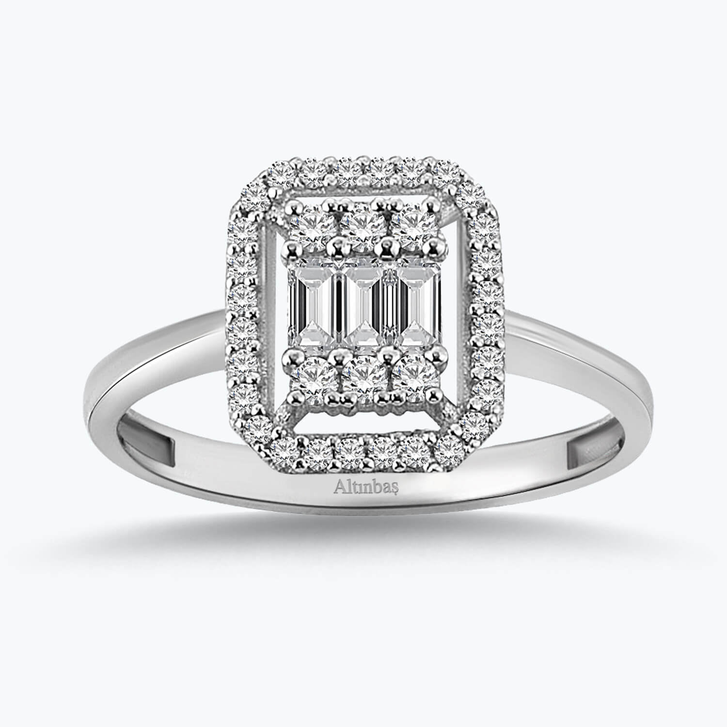 Introducing the Baguette Gold Ring from Altınbaş Jewellery, a symbol of a unique love story that is as sophisticated and shiny as the woman who wears it. This stunning piece is meticulously crafted from 14K white gold, a testament to the quality and craftsmanship that Altınbaş is renowned for. The ring features a beautiful baguette-cut cubic zirconia gemstone, set in a way that captures and reflects light, ensuring it sparkles from every angle. This exquisite gemstone is a harbinger of good fortune, and its gleaming presence on your finger serves as a constant reminder of the love that surrounds you. The ring's design strikes a perfect balance of shine and subtlety. Its elegant simplicity ensures it never overshadows your natural beauty, instead enhancing it with a touch of sophistication and luxury. This stunning piece is not just a ring, but a statement of style and elegance. Ideal for engagements, this ring is more than just a piece of jewellery. It is a promise of love, a symbol of commitment, and a testament to the unique love story that you and your partner share. Every time you glance at this beautiful ring, you'll be reminded of the special moments that have brought you together. The Baguette Gold Ring is a perfect choice for women who appreciate the finer things in life. Its timeless elegance ensures it will never go out of style, making it a piece to cherish for a lifetime. With Altınbaş Jewellery, you're not just buying a product, you're investing in a piece of art that will continue to shine as brightly as your love.