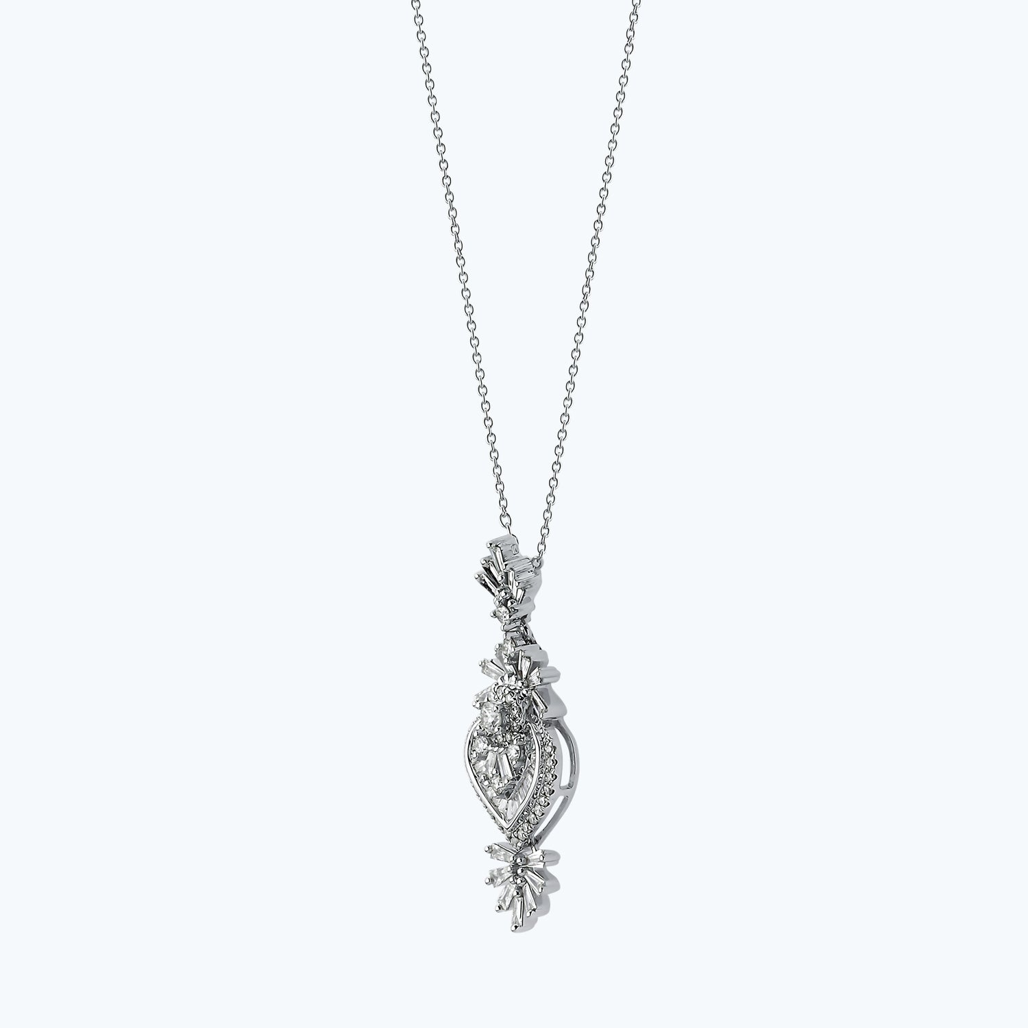 Introducing the stunning Diamond Necklace from Altınbaş, a symbol of elegance and sophistication. This luxurious piece is meticulously crafted from 14K white gold, a metal known for its durability and timeless appeal. The white gold setting enhances the brilliance of the diamonds, creating a mesmerising sparkle that radiates warmth and glow. This necklace features an array of baguette diamonds, carefully selected for their exceptional quality. The baguette cut is renowned for its unique, rectangular shape that showcases the diamond's clarity and lustre, offering a contemporary twist on traditional designs. Embracing the power of simplicity, this necklace is a testament to the belief that less is more. Its minimalist design allows the beauty of the diamonds to truly shine, making it a versatile addition to any jewellery collection. Whether worn alone or layered with other pieces, this necklace is a statement of understated elegance. Its delicate chain and secure clasp ensure a comfortable fit, allowing you to wear it with confidence. The Diamond Necklace from Altınbaş is more than just a piece of jewellery. It's a celebration of craftsmanship, quality, and style. It's a piece that you'll treasure for a lifetime, one that will enhance your natural beauty and elevate your everyday look. Invest in this exquisite piece and experience the luxury of Altınbaş. Because you deserve nothing but the best.