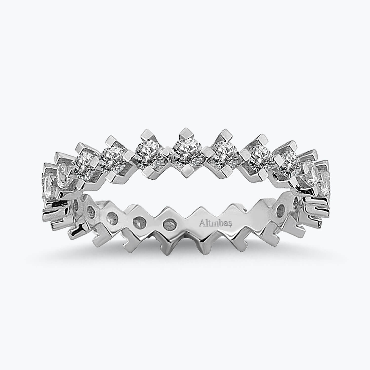 Introducing the Eternity Gold Ring from Altınbaş Jewellery, a timeless expression of love's durability and an eternal symbol of power and strength. This exquisite piece is more than just an accessory; it's a statement of elegance and sophistication that is designed to last an eternity. Expertly crafted from 14K white gold, the ring boasts a stunning array of round cubic zirconia stones, each one delicately set to catch the light from every angle. The shimmering white hue of the gold perfectly complements the sparkle of the cubic zirconia, creating a reflection of perfect harmony. This Eternity Gold Ring is not just a piece of jewellery, it's a confluence of tradition and modernity. The timeless elegance of gold is beautifully juxtaposed with the contemporary allure of cubic zirconia, making this ring a truly unique piece. It's a testament to Altınbaş's commitment to creating jewellery that is as enduring as it is beautiful. Perfect as an anniversary gift or a birthday present, this ring is sure to be cherished by the special woman in your life. It's a reminder of the everlasting bond you share, a bond as strong and enduring as the ring itself. Wearing this Eternity Gold Ring from Altınbaş is not just about showcasing your style, it's about expressing your love and commitment. It's about celebrating the timeless beauty of gold and the enduring allure of cubic zirconia. It's about embracing the perfect harmony of tradition and modernity. Choose the Eternity Gold Ring from Altınbaş, and let your jewellery reflect your timeless elegance and sophisticated taste.