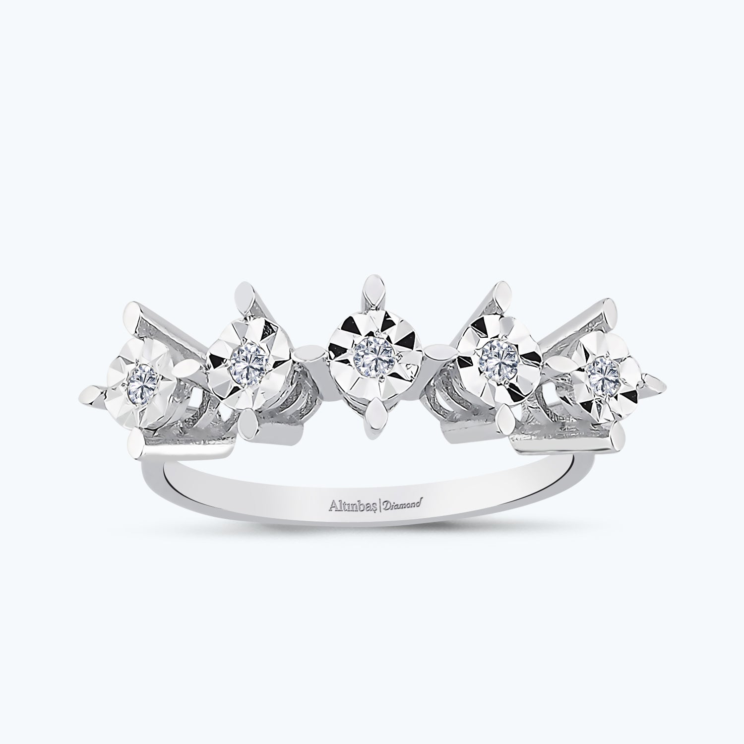 With a dainty design, the Altınbaş Jewellery Five Stone Diamond Rings is carefully handcrafted from 8ct Solid Gold with the most sparkling pure diamond selected and carefully set by experienced craftsmen.