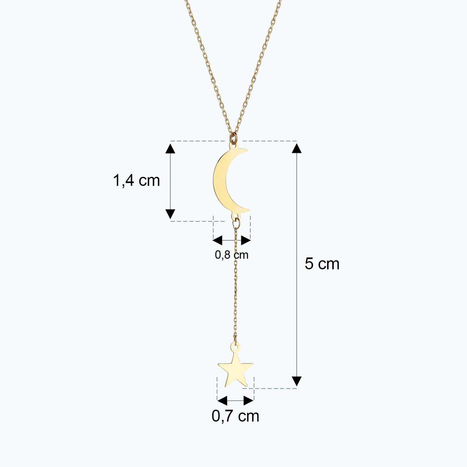 Altınbaş Jewellery Moon Star Gold Necklace is carefully handcrafted from 14K Solid Gold with a dainty design by experienced craftsmen.
