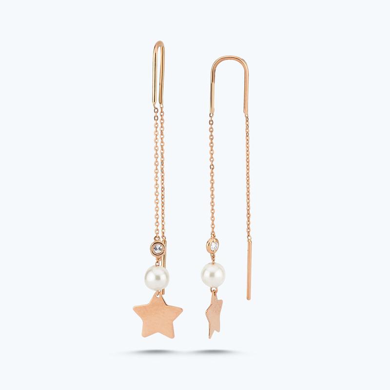 Introducing the Pearl Star Diamond Earrings, a luxurious offering from Altınbaş Jewellery, a brand renowned for its sophisticated and high-quality pieces. These earrings are meticulously crafted from 14K rose gold, exuding a warm, pink hue that is both contemporary and timeless. The centrepiece of these earrings is undoubtedly the lustrous pearls that radiate a sense of wholeness and completion. Pearls, with their natural beauty and elegance, have long been symbols of purity and love. These earrings brilliantly encapsulate this symbolism, making them a perfect tribute to love and kindness. Adorning the pearls are round, G-grade diamonds, meticulously arranged to form a star. The star, a universal symbol of guidance and aspiration, adds a touch of celestial elegance to these earrings. The diamonds are of SI clarity, ensuring a dazzling sparkle that enhances the overall design. The Pearl Star Diamond Earrings are more than just an accessory; they are a reflection of enduring romance. The combination of pearls and diamonds set in rose gold creates a harmonious blend of elegance and luxury, making these earrings a symbol of eternal elegance. These earrings are not just pieces of jewellery; they are gifts to be cherished forever. Whether it's a special anniversary, a birthday, or just a token of appreciation, these earrings are sure to make a lasting impression. Altınbaş Jewellery's Pearl Star Diamond Earrings are designed for the discerning woman who appreciates the finer things in life. They are a perfect blend of traditional craftsmanship and modern design, offering a unique style that is both classic and contemporary. Experience the luxury, sophistication, and timeless elegance of Altınbaş Jewellery with the Pearl Star Diamond Earrings. They are not just accessories; they are a statement of style and class.