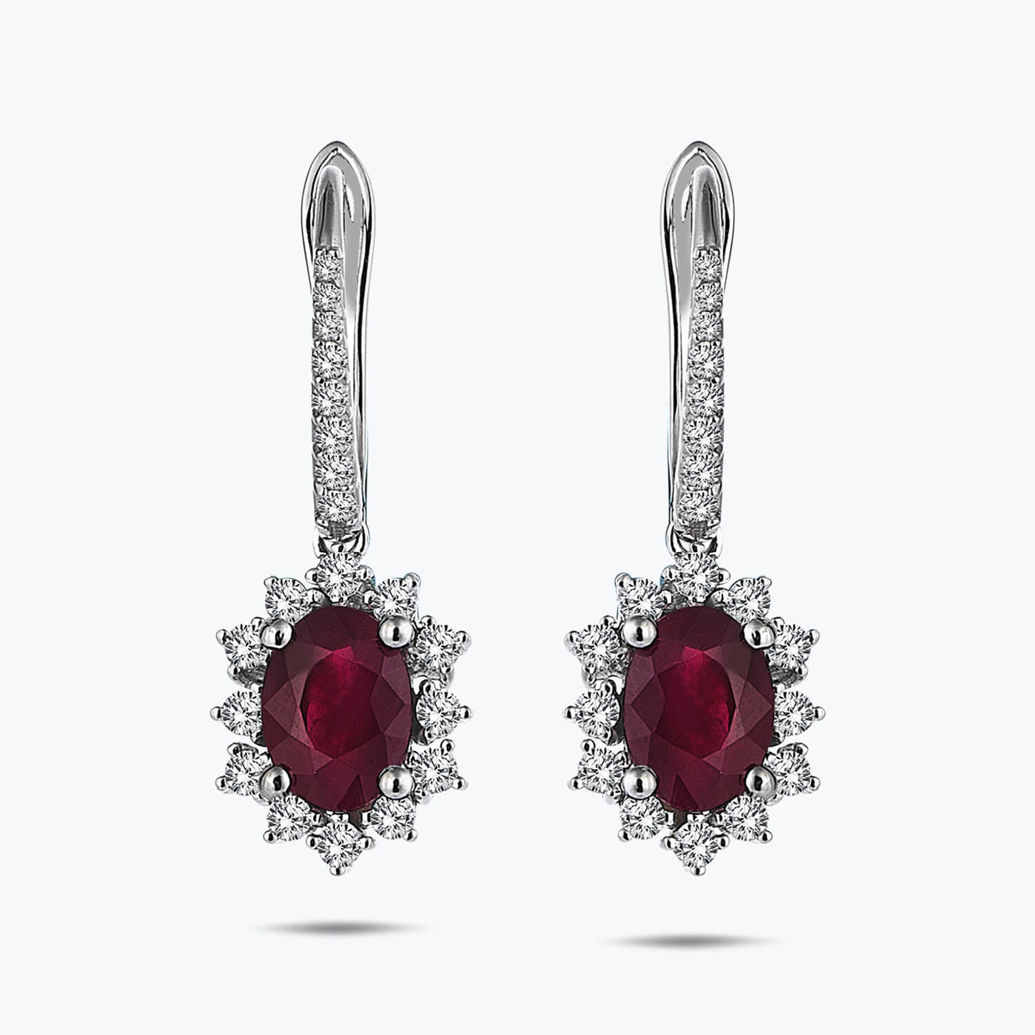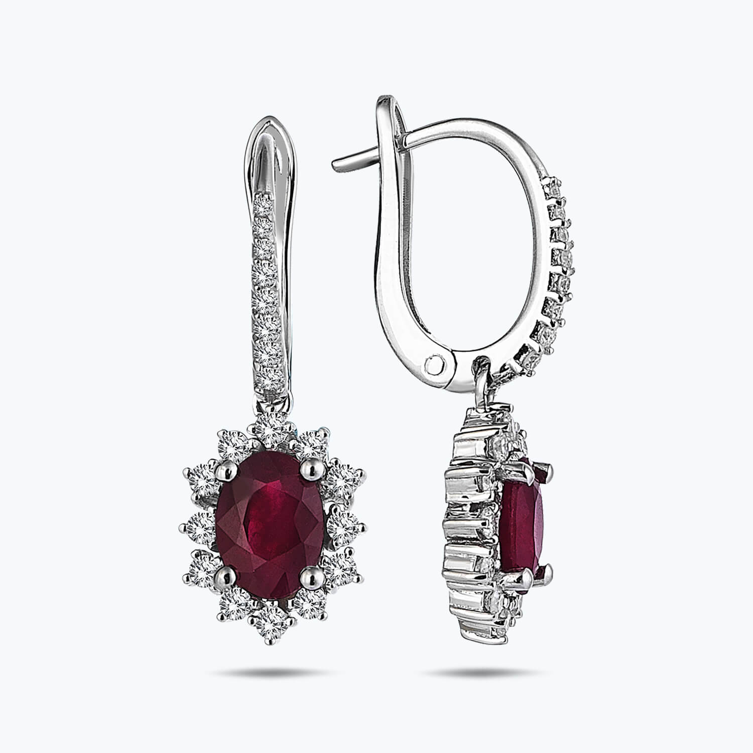 Introducing the Ruby Diamond Earrings from Altınbaş Jewellery, an epitome of timeless beauty and exquisite craftsmanship. Crafted with precision, these earrings are a perfect blend of modern design and original style. Made from 14K white gold, they exude a sense of unbroken continuity of style, embodying grace and style in every aspect. The main attraction of these earrings is the captivating oval-shaped ruby gemstones. Their vibrant colour is a testament to the eternal symbol of power and strength, reflecting your dynamic persona. Surrounded by round G diamonds, these earrings radiate a mesmerising sparkle that's sure to turn heads at every occasion. These earrings are not just a piece of jewellery, but a timeless piece that can elevate any outfit, be it casual or formal. The combination of the coloured stone and diamonds creates a striking contrast that adds a touch of elegance and sophistication to your look. Ideal for women who appreciate the finer things in life, these Ruby Diamond Earrings from Altınbaş Jewellery are a testament to our commitment to quality and style. Whether you're buying for yourself or as a gift, these earrings are sure to impress. Experience the beauty and elegance of our Ruby Diamond Earrings, a symbol of your dynamic persona, and let them be a constant reminder of your strength and grace.