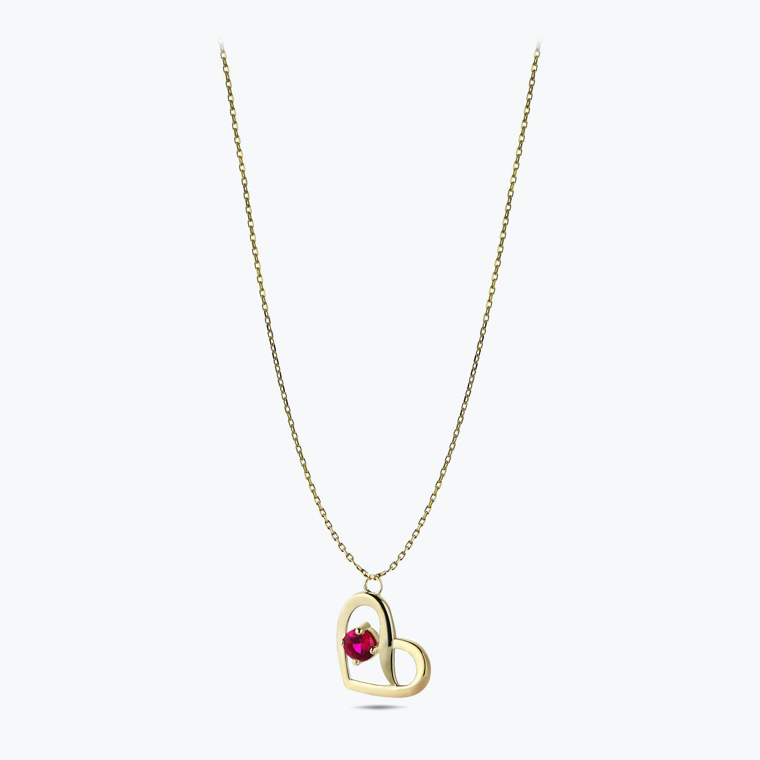 Altınbaş Jewellery Heart Gold Necklace with red Stone is carefully handcrafted from 14K Solid Gold with a dainty design by experienced craftsmen.