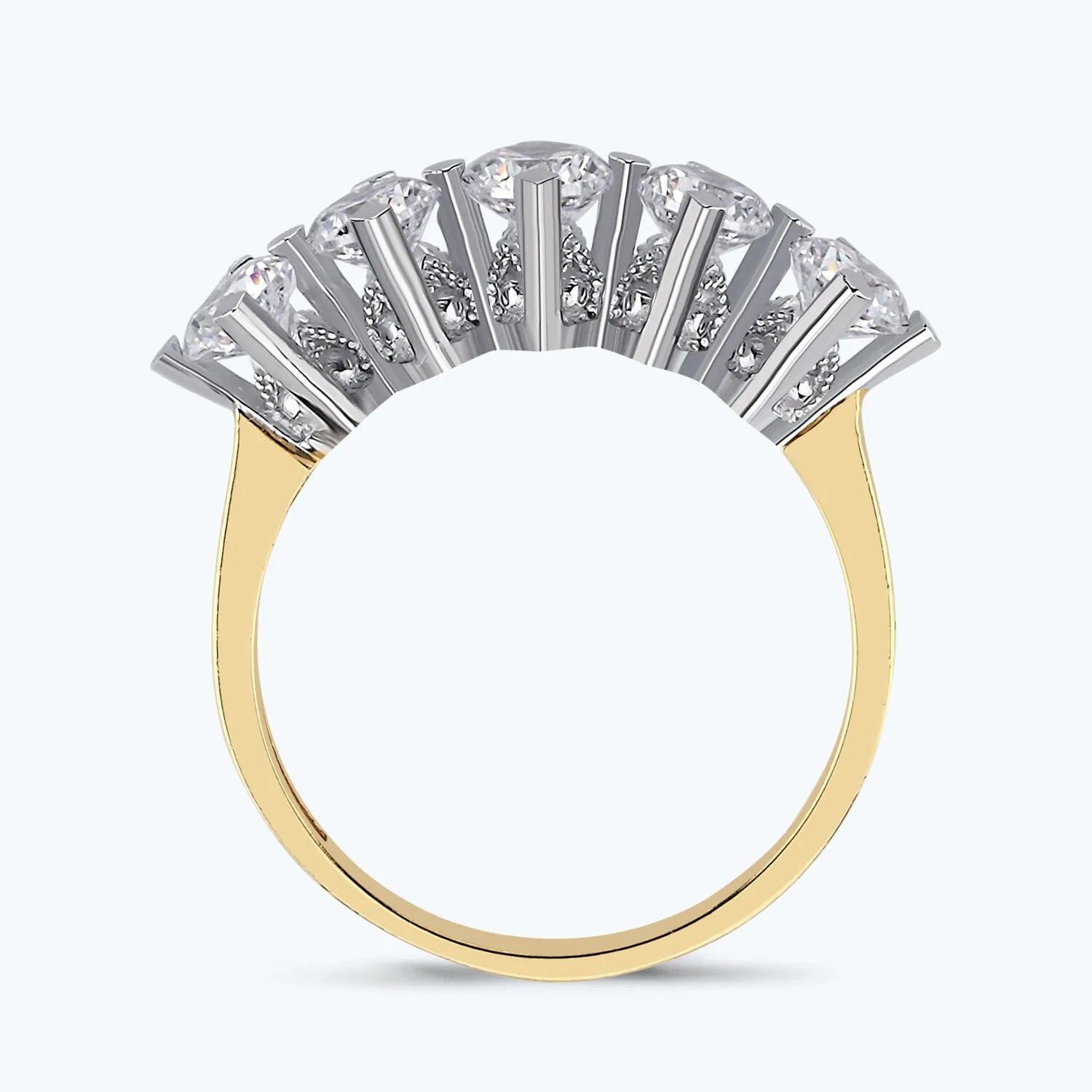 Reflecting your style and breathtaking with their unique glow, the gold five-stone rings manage to attract the attention of women every season with their elegant designs. Designed by lining up tiny stones in rows, the models stand out with the combination of white and yellow gold. Especially the white gold pentagram rings produced in high profile form leave an extremely elegant and gentle stance on women's fingers.