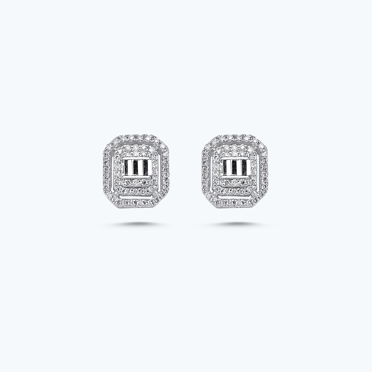 Introducing Altınbaş Jewellery's Diamond Earrings, a harmonious blend of gold and diamonds that are sure to add a touch of class to any ensemble. These earrings are a tribute to your refined taste, crafted meticulously from 8K white gold. The white gold not only adds a modern touch to the overall design but also enhances the shine of the diamonds, creating a perfect balance of shine and subtlety. The diamonds, cut in an emerald and baguette style, are the showstoppers of this piece. The emerald cut diamonds, with their elongated, rectangular facets, are known for their timeless elegance and sophistication. They are complemented by the baguette-cut diamonds, which are renowned for their clarity and lustrous appeal. The combination of these two cuts creates a visual spectacle that is hard to resist. The earrings are designed as pin earrings, making them easy to wear and secure. The round diamonds dispersed throughout the design add an extra layer of sparkle, ensuring these earrings catch the eye from every angle. These earrings are more than just a piece of jewellery; they are a treasure that lasts forever. Their intricate design and high-quality materials make them a harbinger of prosperity and peace, symbolising an infinite cycle of beauty. Perfect for the woman who appreciates the finer things in life, these Diamond Earrings from Altınbaş Jewellery are an investment in timeless style and elegance. They are the perfect gift for that special someone or a luxurious treat for yourself. Experience the allure of these stunning Diamond Earrings and let them elevate your jewellery collection to new heights of sophistication.