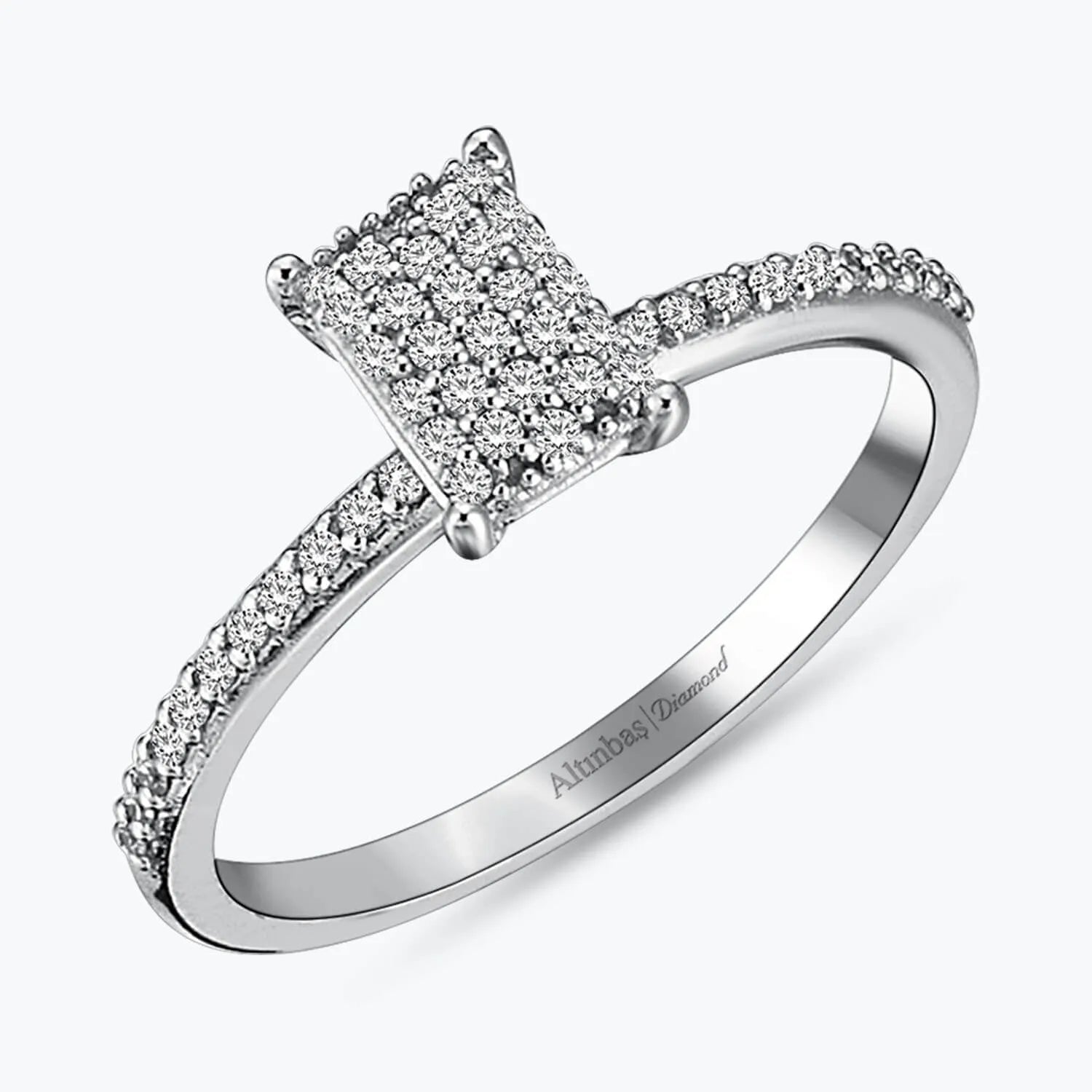 Introducing Altınbaş Jewellery's exquisite Diamond Engagement Ring, a piece that is more than just a ring. It's a symbol of love, respect, and the power of making a promise. This dazzling piece from our Wedding Collection is meticulously crafted in 8K white gold, a metal known for its warmth and glow, enhancing the brilliance of the round diamond that takes centre stage. Each diamond on this ring has been handpicked for its exceptional quality, ensuring that your ring exudes class and charm. The round diamond is encircled by side stones, creating an endless cycle of glamour that is bound to captivate and impress. The engagement ring is more than just an accessory; it is a testament to your unique love story. It is a token of your promise, a promise that is as enduring and timeless as the ring itself. The side stones on the ring not only enhance the beauty of the central diamond but also signify the journey you are about to embark on, a journey filled with love, companionship, and shared dreams. This ring is not just a piece of jewellery; it's a memory, a moment, a promise wrapped in the form of a beautiful ring. Its timeless elegance and sophistication make it a gift to be cherished forever, a constant reminder of the love and commitment you share. So, make your proposal unforgettable with this exquisite diamond engagement ring. It's more than just a ring; it's a symbol of your promise to cherish, respect, and love each other forever. With this ring, you're not just giving a piece of jewellery; you're giving a lifetime of memories. Altınbaş Jewellery, where every piece tells a story of love, commitment, and a promise of a lifetime.