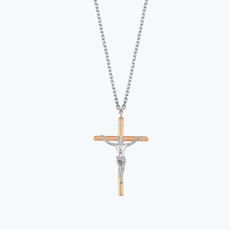 Homepage > > Diamond > Mens Cross Silver Diamond Necklace