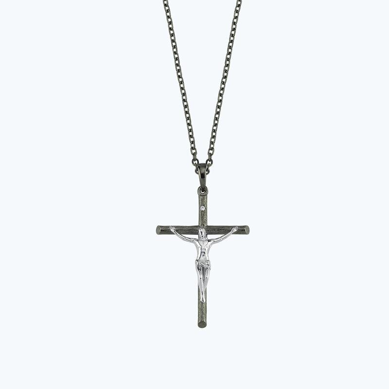 Homepage > > Diamond > Mens Cross Silver Diamond Necklace