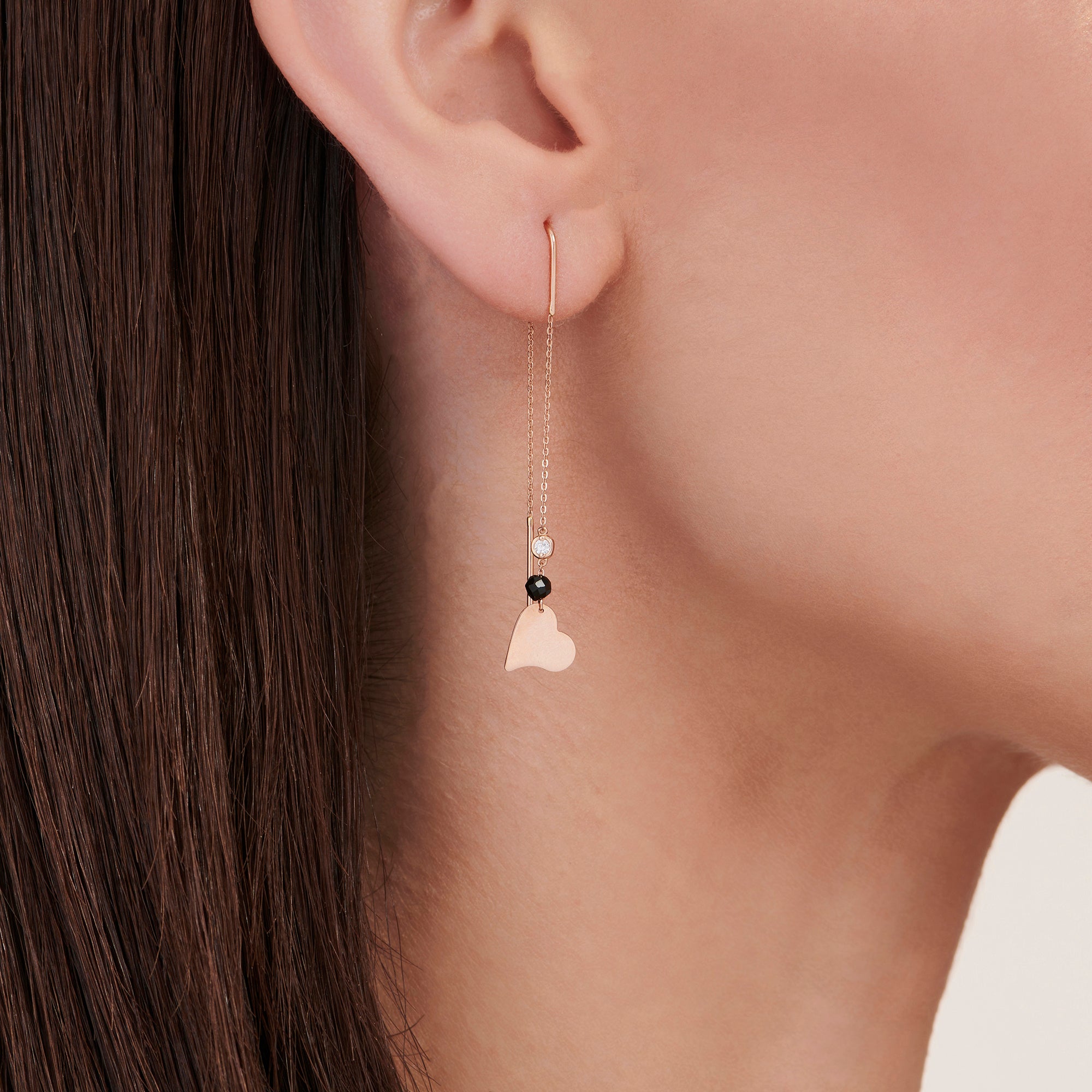 Introducing the Heart Diamond Earrings from Altınbaş Jewellery, a treasure of exquisite beauty that encapsulates the spirit of love. Crafted with meticulous attention to detail, these earrings are an ode to the joy of life, symbolising the purity of the heart and the infinite charm that it holds. Each earring is intricately shaped into a delicate heart, a timeless symbol of love and affection. Set within this heart is a stunning round diamond, its brilliance reflecting the light with an unmatched sparkle. The diamond is securely nestled in 14K rose gold, its pink hue adding a touch of femininity and elegance to the piece. In addition to the diamond, each earring features a spinel, a gemstone known for its rich colour and durability. The spinel complements the diamond perfectly, creating a captivating contrast that is sure to draw admiration. The Heart Diamond Earrings are not just a piece of jewellery, but a statement of sophistication and quality. The gold, diamond, and spinel work together to create a piece that is both luxurious and stylish, perfect for the discerning woman who values elegance and grace. Whether it's a gift for a loved one or a treat for yourself, these earrings are a timeless piece that will be cherished for years to come. Experience the joy of wearing Altınbaş Jewellery, where every piece is a symbol of love and beauty.