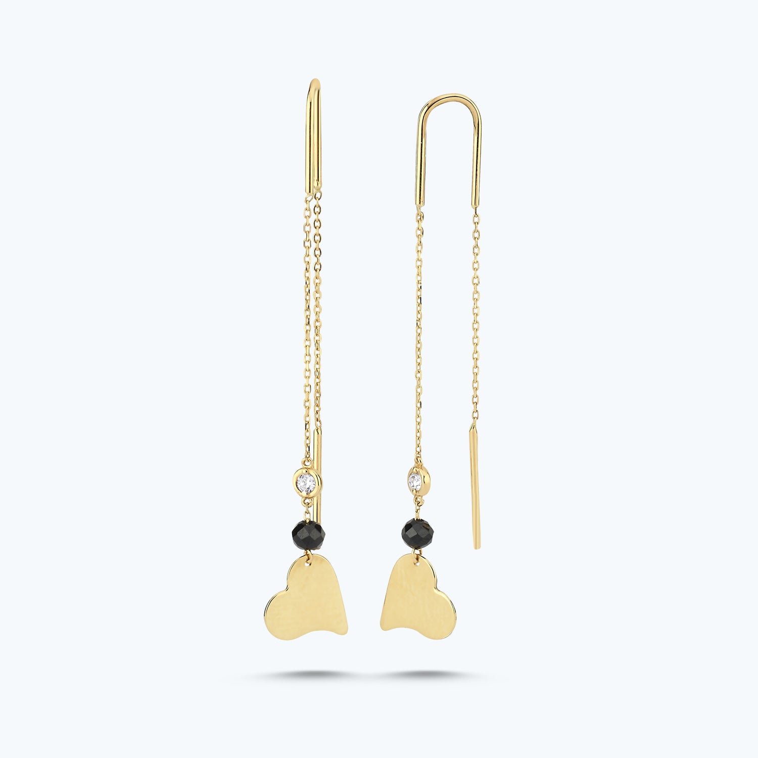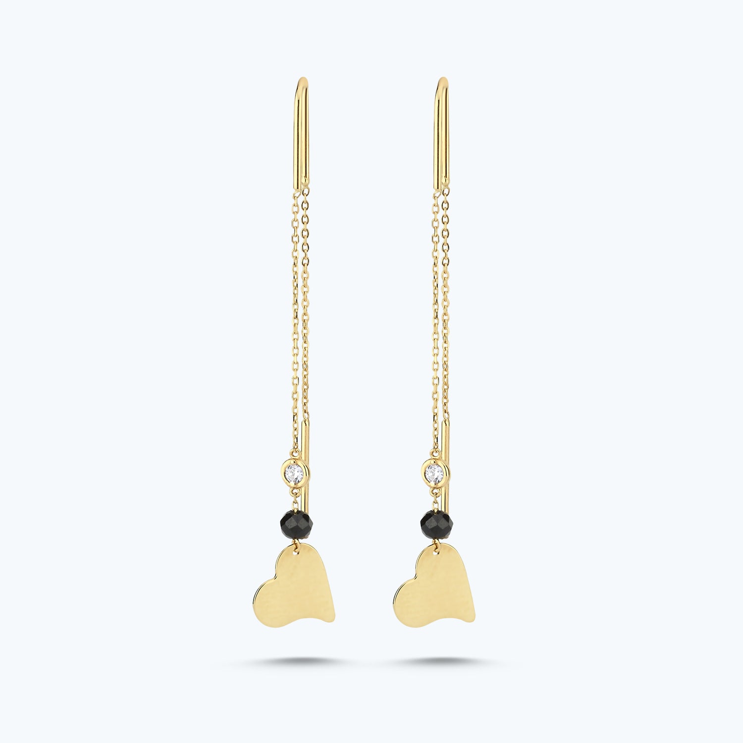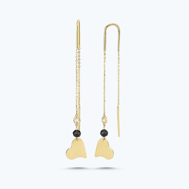Introducing the Spinel Stone Heart Diamond Earrings from Altınbaş Jewellery - a perfect blend of elegance and charm. These exquisite earrings are meticulously crafted from 14K yellow gold, a testament to the enduring quality and luxurious appeal of Altınbaş craftsmanship. Each earring is adorned with a radiant green spinel stone, nestled in a heart-shaped setting. This unique design element serves as a symbol of infinite charm, adding a touch of romance and intrigue to any ensemble. The spinel stones are complemented by a halo of round, glistening diamonds, adding a touch of class to these already stunning earrings. These earrings dangle delicately, moving with you and catching the light from every angle. The result is a captivating sparkle that never fails to draw admiring glances. The G grade diamonds, known for their exceptional brilliance, further enhance the overall allure of these earrings. Designed for women who appreciate the finer things in life, these earrings are more than just a piece of jewellery; they are a treasure that lasts forever. They make a perfect gift for a loved one or a well-deserved treat for yourself. With these Spinel Stone Heart Diamond Earrings, you're not just wearing a piece of jewellery; you're wearing a statement of sophistication and timeless style. Choose Altınbaş Jewellery for pieces that truly embody luxury and quality.