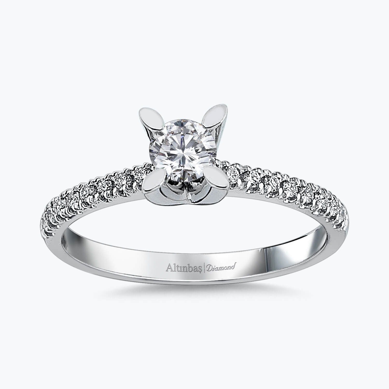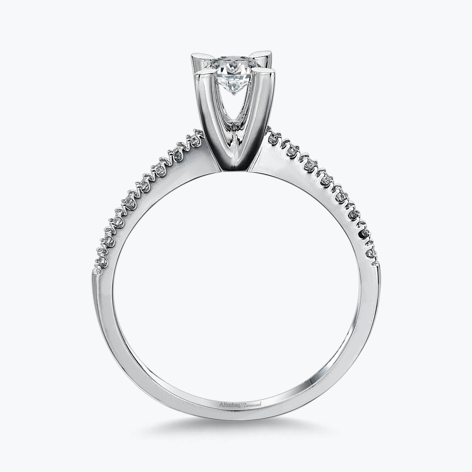 Introducing the Solitaire Diamond Ring by Altınbaş Jewellery, a luxury brand renowned for its sophistication and quality. This exquisite piece is a part of our Wedding Collection, specially designed for women who appreciate elegance and timeless beauty. Crafted from 14K white gold, this ring offers a lustrous beauty that never fades. It features a round solitaire diamond, a symbol of eternal love, set in a way that allows it to catch and reflect light beautifully. This is not just a ring, but a reflection of an eternal love, a mark of distinction that sets you apart. Accentuating the central diamond, the ring also boasts side stones, adding an echo of endless charm to the design. These additional diamonds enhance the sparkle of the main stone, creating a dazzling display that will leave everyone in awe. The Solitaire Diamond Ring is not just a piece of jewellery, it's a celebration of your love that is meant to last forever. It is designed to be a constant reminder of the special bond you share, making every moment you wear it feel like a special occasion. With its exquisite design and luxurious feel, this ring is an expression of timeless beauty. It is a piece that will not only add to your elegance today but will also be a cherished heirloom in the years to come. Choose the Solitaire Diamond Ring to mark your special day or to make any day special. With Altınbaş Jewellery, you're not just buying a ring, you're investing in a symbol of love and commitment that will last a lifetime.