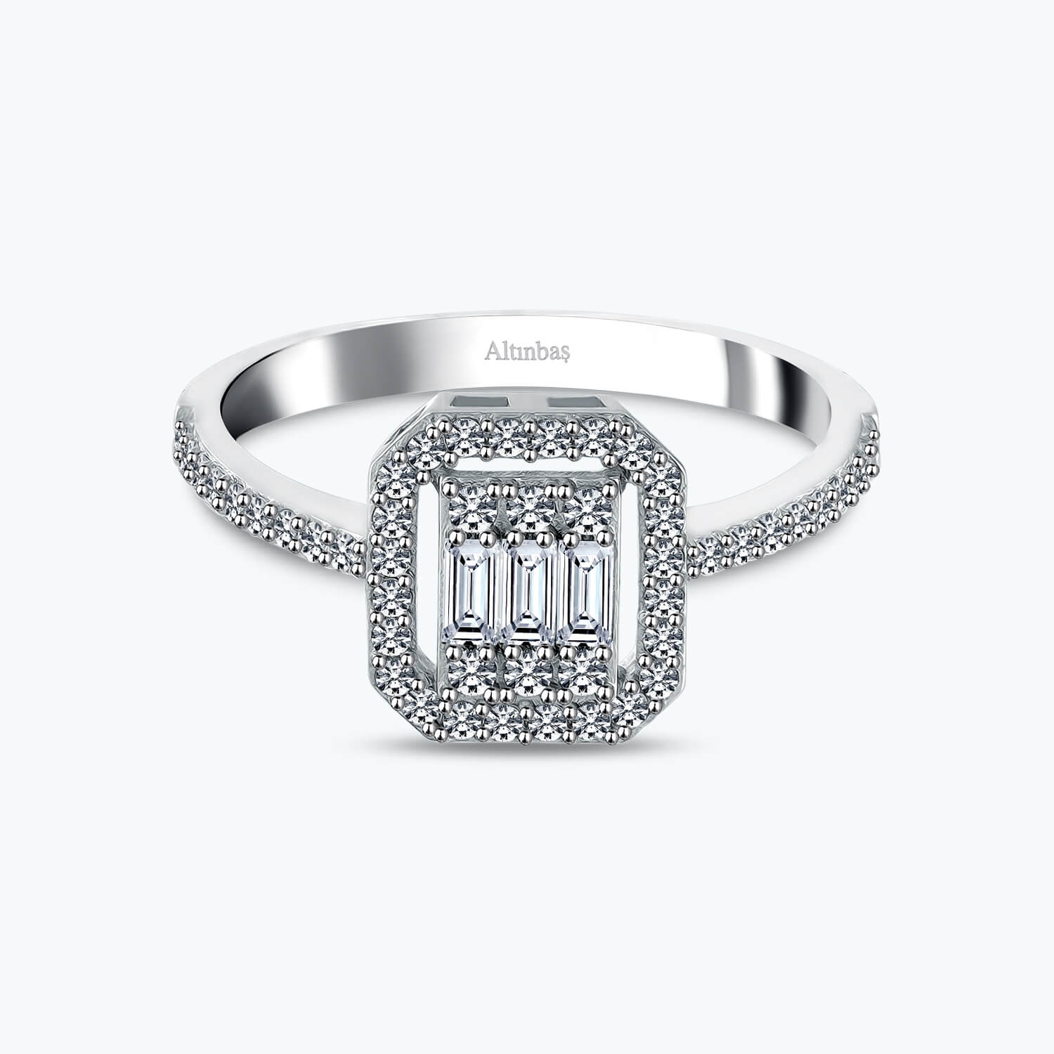Introducing the Baguette Gold Ring from Altınbaş Jewellery, a true embodiment of sophistication and quality. This exquisite piece is meticulously crafted from 14K white gold, an emblem of prosperity and success, designed to exude class and charm at every turn. The radiant glow of the white gold perfectly complements the sparkling cubic zirconia, creating a harmonious balance that is truly captivating. The baguette design of this ring is not just a style statement, but a testament to the timeless allure of classic jewellery. It's a piece that enhances your elegance, making you the centre of attention in any gathering. The side stones, meticulously placed, add a touch of glamour and sophistication, making this ring a must-have in your jewellery collection. This ring is not just a piece of jewellery, but a symbol of your eternal love. It is designed to immortalise your love in the most beautiful way possible. Whether it's an anniversary gift, a birthday present, or an engagement ring, this piece is sure to make a grand impression. The Baguette Gold Ring is more than just an accessory; it's a statement, a reflection of your elegance, and a celebration of your love. It's a ring that speaks volumes about your taste and your love for the finer things in life. Altınbaş Jewellery invites you to embrace this symbol of prosperity and success, and let it be a testament to your love and commitment. Experience the allure of the Baguette Gold Ring, a piece that truly resonates with the essence of Altınbaş Jewellery - sophistication, quality, and timeless elegance.