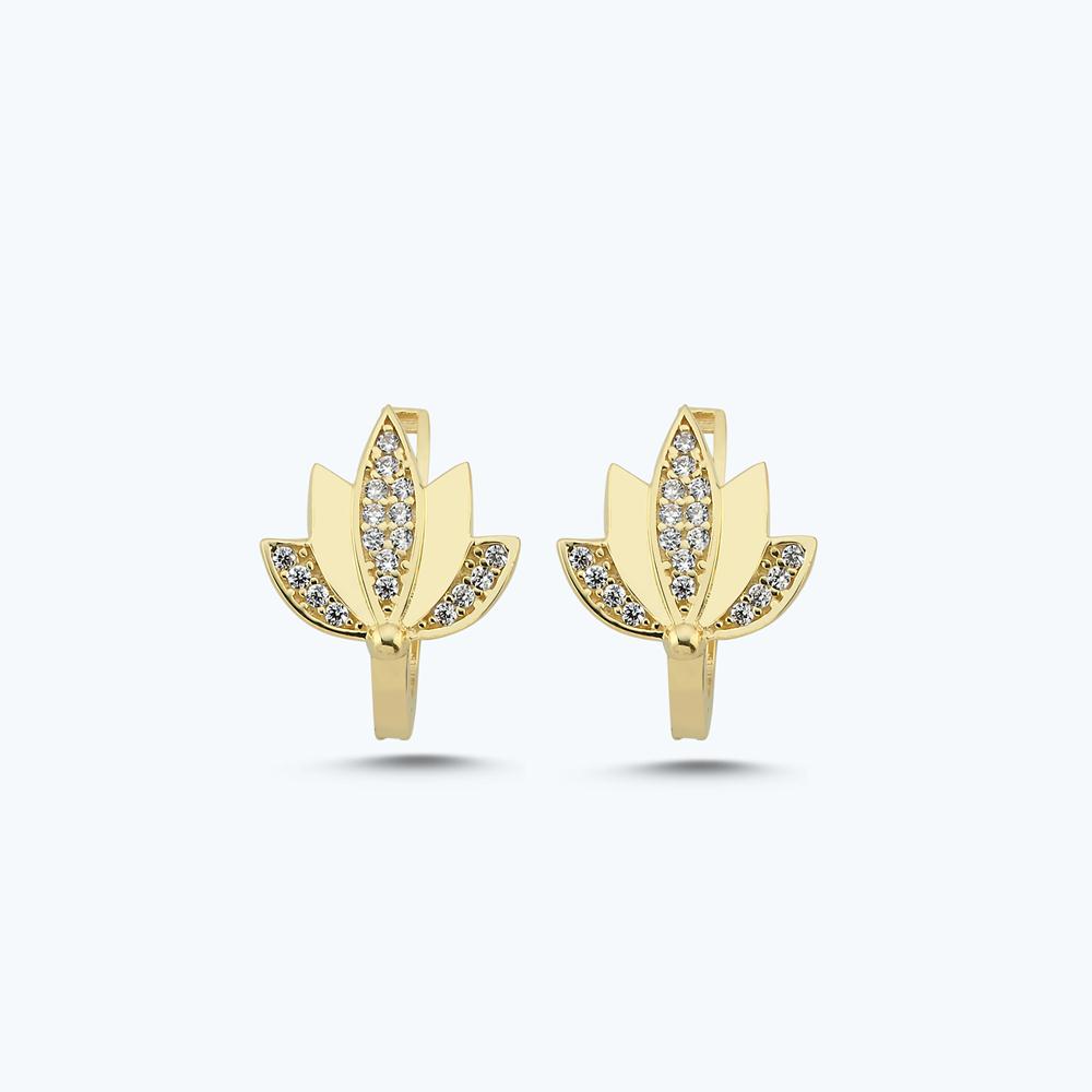 Homepage > Jewellery > Gold Lotus Earrings with Stone