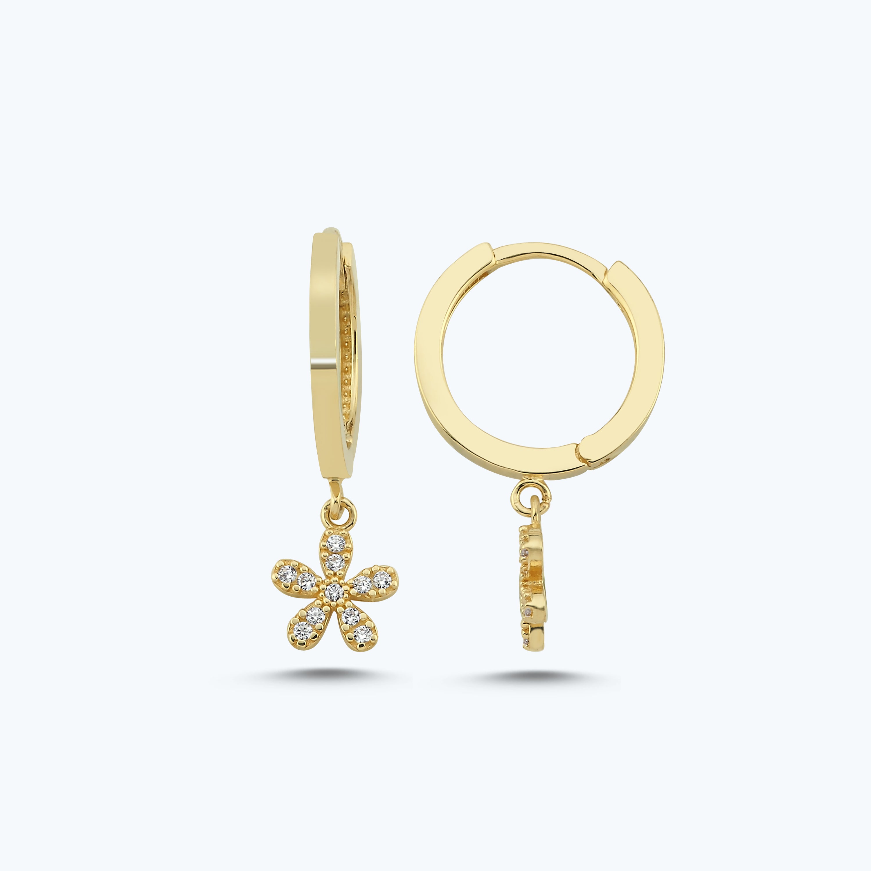 Homepage > Jewellery > Dangling Gold Flower Hoop Earrings