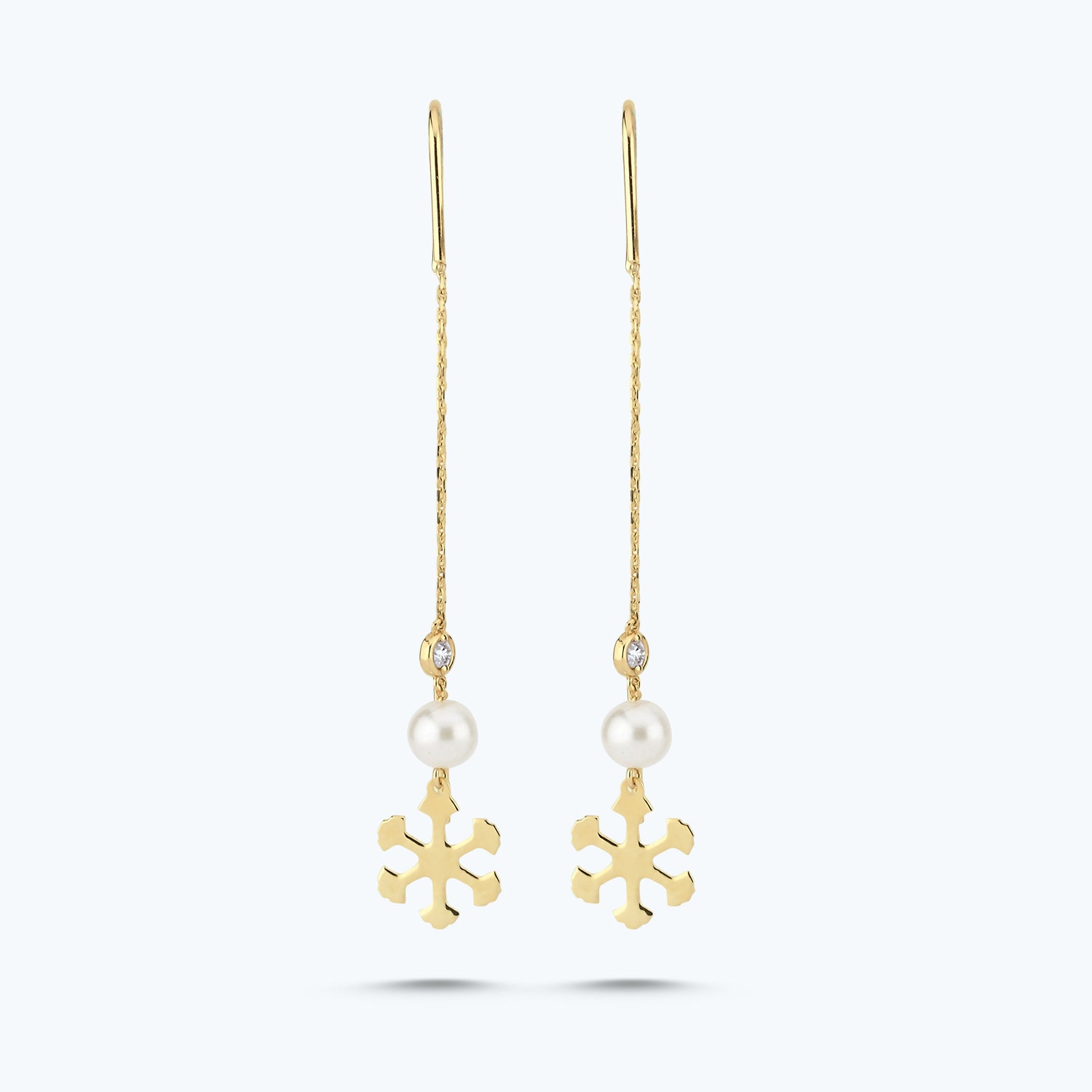 Introducing Altınbaş Jewellery's Pearl Diamond Earrings, an exquisite and timeless piece of adornment that embodies sophistication and charm. These earrings are meticulously crafted from 14K gold, featuring a polished finish that exudes an air of elegance and luxury. Each earring is adorned with a captivating green diamond, masterfully cut in a round shape to enhance its brilliance and sparkle. The green diamond, coupled with the glow of gold, creates a stunning contrast that is sure to draw the eye and garner compliments. The crowning glory of these earrings, however, is the lustrous pearl that dangles gracefully. Pearls are a symbol of timeless elegance, and these earrings are no exception. They add a touch of classic beauty to any outfit, making them a versatile addition to your jewellery collection. These earrings are not just pieces of jewellery; they are a celebration of the artistry and craftsmanship that Altınbaş Jewellery is renowned for. The intricate design and impeccable execution of these earrings are a testament to our commitment to quality and style. Whether you're dressing up for a special occasion or simply want to add a touch of sophistication to your everyday look, these Pearl Diamond Earrings are the perfect choice. They are a shining example of the elegance and charm that Altınbaş Jewellery embodies, making them a must-have for any jewellery aficionado. Experience the luxury and sophistication of Altınbaş Jewellery with these stunning Pearl Diamond Earrings. They are more than just an accessory; they are a statement of style and elegance that will never go out of fashion.