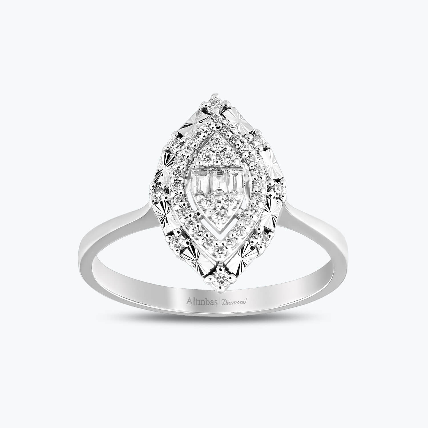 Introducing the Baguette Diamond Ring from Altınbaş Jewellery, a true embodiment of timeless elegance. This stunning piece is meticulously crafted from 14K white gold, a precious metal that represents the perfect balance of luxury and durability. The gleaming white gold band serves as the perfect backdrop for the dazzling round and baguette diamonds, each handpicked for their exceptional brilliance and clarity. This ring is not just a piece of jewellery; it is a manifestation of wealth and prestige, a symbol of the eternal bond of love. When you slip this ring onto your finger, you're not just wearing a piece of jewellery, you're wearing a promise of forever. The design of the ring is inspired by the concept of the union of hearts. The main diamond is encircled by a halo of smaller diamonds, a design that symbolises two hearts becoming one. This design is not only visually appealing but also carries a deep, romantic significance. The Baguette Diamond Ring exudes class and charm, making it an ideal choice for an engagement ring. The combination of round and baguette diamonds creates a unique play of light, capturing the attention and admiration of everyone in the room. Altınbaş Jewellery is renowned for its commitment to quality and sophistication. Each piece is a testament to our master craftsmen's skill and passion, ensuring that you are investing in a piece of jewellery that will last a lifetime. This ring is designed for women who appreciate the finer things in life. It is a statement piece that adds a touch of luxury to any outfit, making it perfect for special occasions or everyday wear. Invest in the Baguette Diamond Ring from Altınbaş Jewellery and experience the joy of owning a piece of jewellery that is as unique and beautiful as your love story.