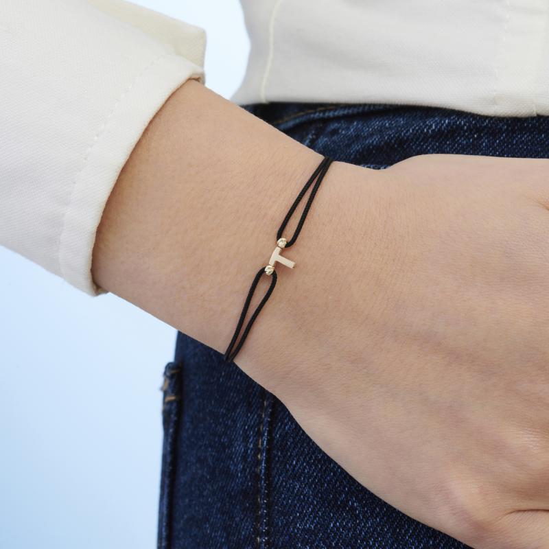Homepage > Jewellery > Bracelets > Letter T Bracelet with Gold String