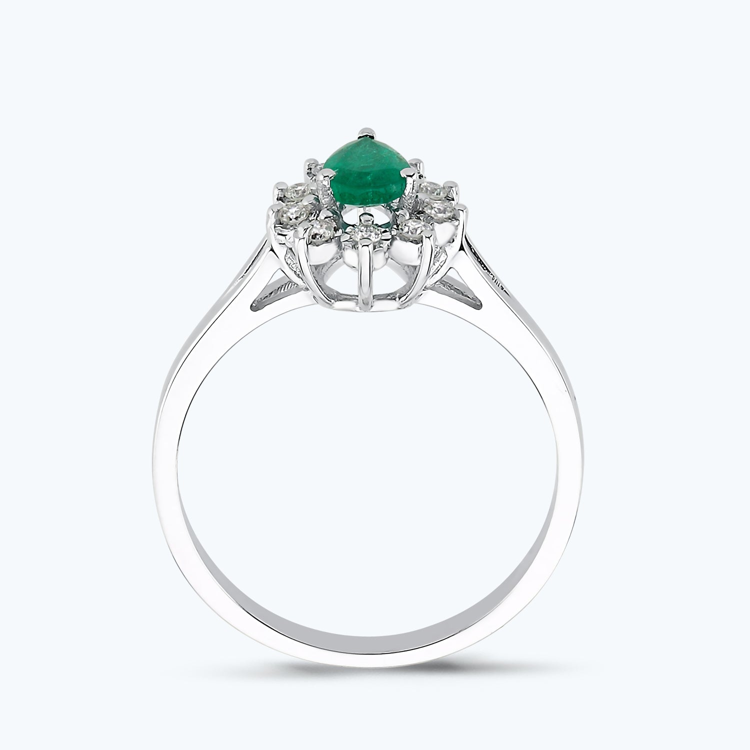 Introducing the epitome of glamour and grandeur, the Altınbaş Emerald Diamond Ring. This is not just a ring, but a manifestation of life's richness and a symbol of pure elegance, crafted with precision. It is made from 8K white gold, a metal renowned for its lustrous shine and durability. This precious material adds a golden touch to your personality, enhancing your natural elegance and style. In the heart of this ring lies a dreamy, magical emerald. The emerald, a gemstone celebrated for its vibrant green hue, emanates energy and vitality. It's pear-shaped, a design choice that maximizes the stone's brilliance and colour. This gemstone is surrounded by a halo of sparkling diamonds, creating a stunning contrast that highlights the emerald's natural beauty. The diamonds in this ring are of G quality, a grade that signifies their exceptional sparkle and brilliance. These diamonds are set in an 8K white gold band, which complements the emerald and enhances the overall look of the ring. This ring is not just a piece of jewellery; it's a statement piece, an embodiment of luxury and sophistication. It's perfect for the woman who appreciates the finer things in life and isn't afraid to show it. This is the ring for the most important step of your life, the engagement. The Altınbaş Emerald Diamond Ring is more than a ring; it's a dream come true. It's the perfect blend of glamour, grandeur, and elegance, making it an ideal choice for the woman who wants to stand out from the crowd. With this ring on your finger, you'll not only feel like a queen, but you'll look like one too. Experience the magic of Altınbaş with this exquisite Emerald Diamond Ring. It's not just a piece of jewellery; it's a lifestyle.