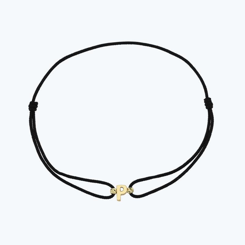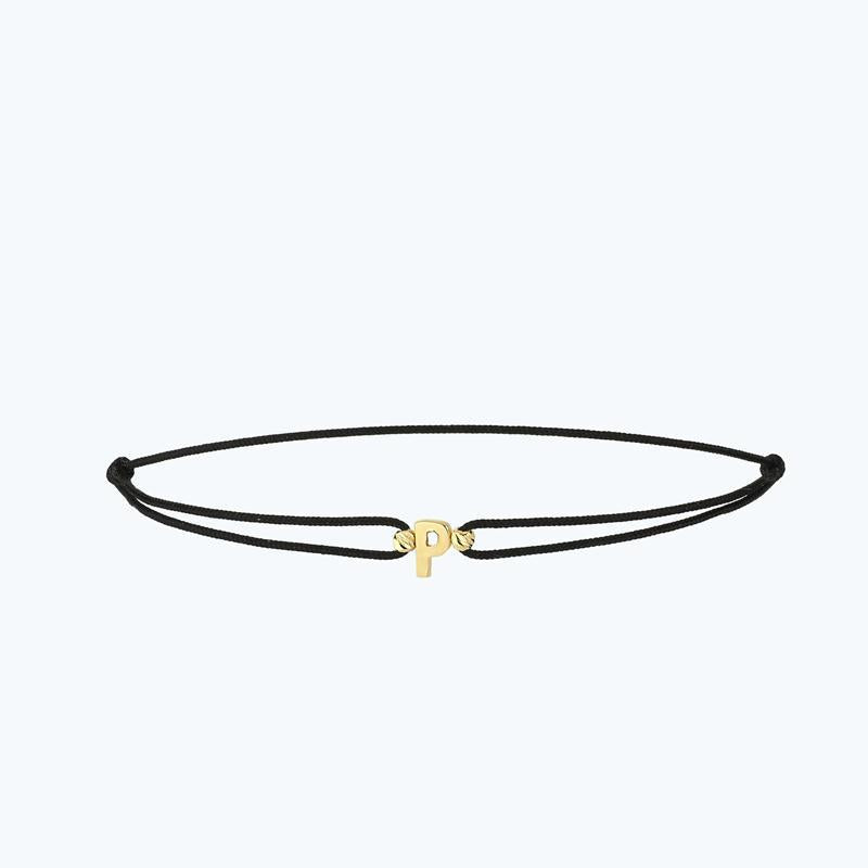 Homepage > > Bracelets > Letter P Bracelet with Gold String