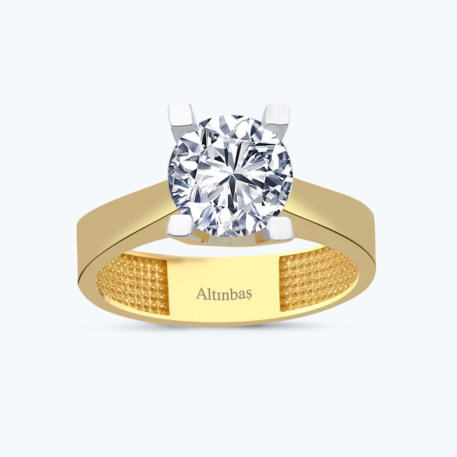 Introducing the Solitaire Gold Ring from Altınbaş Jewellery, a piece that is meticulously crafted to embody sophistication and quality in every aspect. This exquisite ring is an epitome of eternal elegance, a timeless piece that will never go out of style. This jewel is made of 14K yellow gold, a material renowned for its durability and lustrous appeal. The gold has been expertly moulded and polished to perfection, ensuring a finish that radiates a warm, sunny glow. This is a ring that will not only catch the eye, but also beautifully complement any outfit. At the heart of this ring is a dazzling cubic zirconia stone, cut in a classic round shape. The round solitaire design is a symbol of a circle of everlasting love, making this ring not just a piece of jewellery, but a token of affection that can be cherished for a lifetime. The cubic zirconia solitaire is held in place by a secure setting, ensuring that the stone remains as the centrepiece of the ring. This setting not only provides security but also allows light to pass through the stone from all angles, enhancing its sparkle and shine. The Solitaire Gold Ring is more than just a piece of jewellery. It's a testament to the artistry and craftsmanship that Altınbaş Jewellery is renowned for. This ring is a perfect gift for someone special, a beautiful symbol of love that can be worn and cherished every day. In a world where trends come and go, the Solitaire Gold Ring stands as a symbol of eternal elegance. Its classic design and high-quality materials ensure that it will remain a beloved piece in any jewellery collection for years to come. Experience the luxury and sophistication of Altınbaş Jewellery with the Solitaire Gold Ring, a piece that truly embodies the circle of everlasting love.