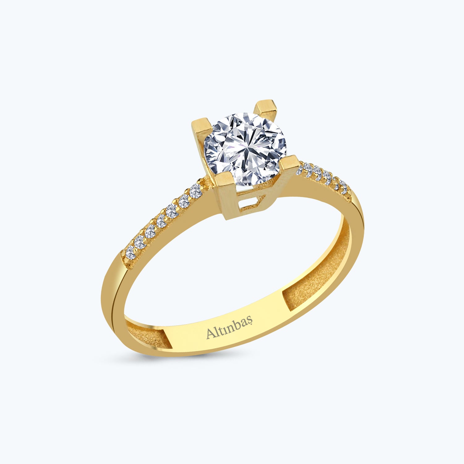 Immerse yourself in the world of luxury and elegance with Altınbaş Jewellery's Solitaire Gold Ring. This meticulously crafted piece is a testament to the brand's enduring commitment to sophistication and quality. Made from 14K yellow gold, this ring exudes a warm, rich glow that mirrors the sun's radiant brilliance. The gold's purity ensures durability and resilience, making this piece a lasting symbol of love and commitment. It's a stunning display of strength, much like the bond it represents. At the heart of this exquisite ring lies a round Cubic Zirconia solitaire. The stone's exceptional cut and clarity reflect light beautifully, creating a dazzling spectacle for all to admire. It's a gem that captures the essence of timeless elegance and the allure of modern design. The solitaire design is a classic symbol of unity and wholeness, representing an unbroken circle of everlasting love. This ring is not just a piece of jewellery; it's a testament to the enduring power of love, a circle that never ends, much like the ring itself. Whether you're marking a significant milestone or simply expressing your love, this Solitaire Gold Ring is the perfect choice. It's an emblem of love's strength and resilience, a piece that will stand the test of time, just like your affection. Choose Altınbaş Jewellery's Solitaire Gold Ring to make your special moments even more memorable. It's more than just a ring; it's a symbol of love, a testament to strength, and a beacon of elegance.