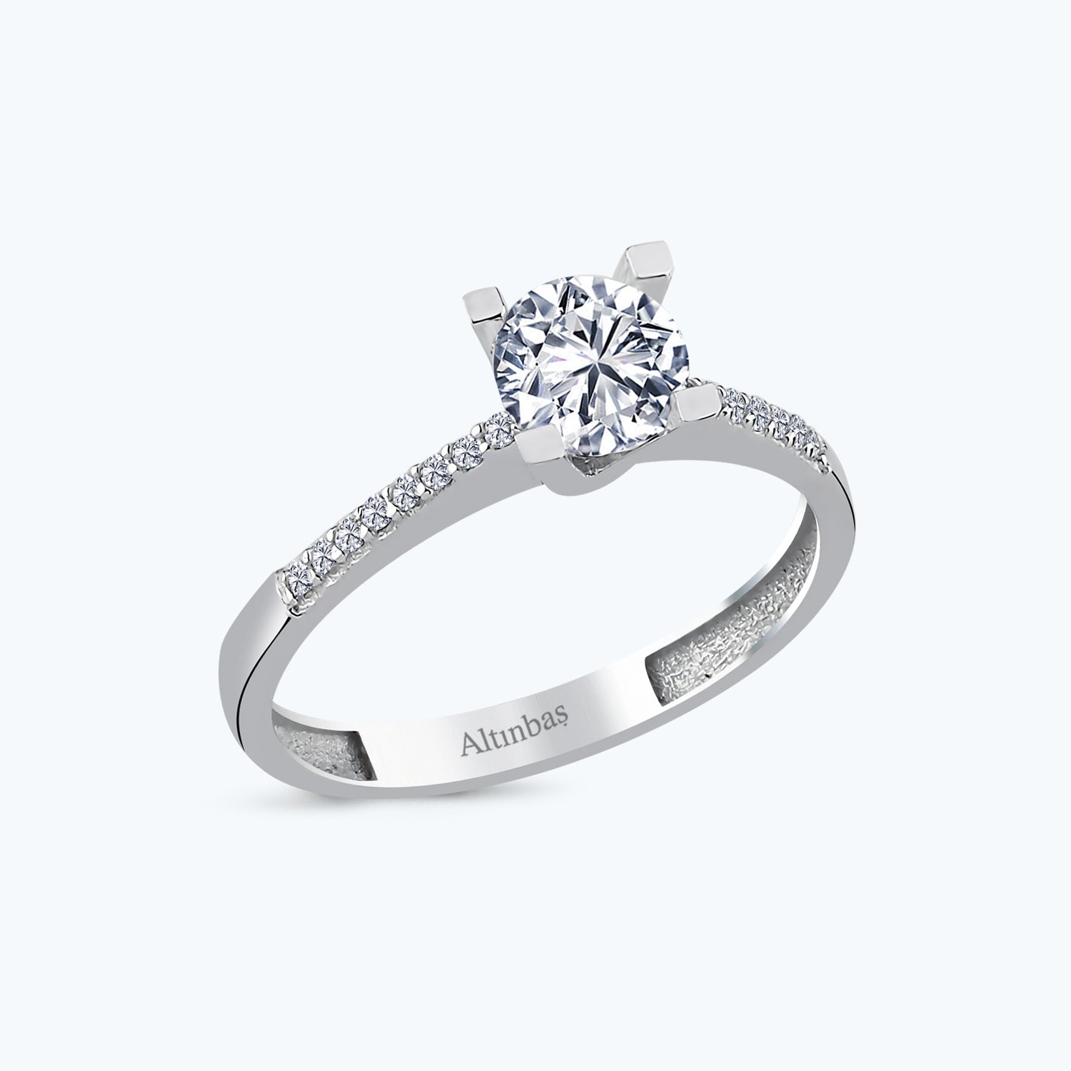 Introducing the Solitaire Gold Ring from Altınbaş Jewellery, a true embodiment of sophistication and quality. This exquisite piece is crafted from 14K white gold, a material known for its durability and timeless appeal. Every detail of this ring is meticulously designed to ensure it exudes a perfect balance of shine and subtlety. The ring features a stunning solitaire cubic zirconia stone, cut in a classic round shape. This stone is a testament to the craftsmanship of Altınbaş, as it captures and reflects light beautifully, making the ring sparkle from every angle. Cubic zirconia is known for its brilliance and clarity, making it a popular choice for those who appreciate the finer things in life. The solitaire style of this ring is a symbol of purity and sanctity. It represents a single, unbroken bond, making it an ideal choice for those looking to express their love and commitment. The solitaire design also allows the cubic zirconia stone to take centre stage, adding to the overall elegance of the ring. This ring is not just a piece of jewellery, but an unending loop of elegance. It is designed to be worn and cherished for a lifetime, making it a perfect gift for special occasions. The ring's simple yet sophisticated design ensures it will complement any outfit, adding a touch of luxury to everyday wear or enhancing the elegance of evening attire. With Altınbaş Jewellery, you are not just purchasing a piece of jewellery, but investing in a timeless piece of art. The Solitaire Gold Ring is a testament to this, offering a blend of style, quality, and craftsmanship that is truly unparalleled. Experience the luxury and sophistication of Altınbaş with this stunning Solitaire Gold Ring.
