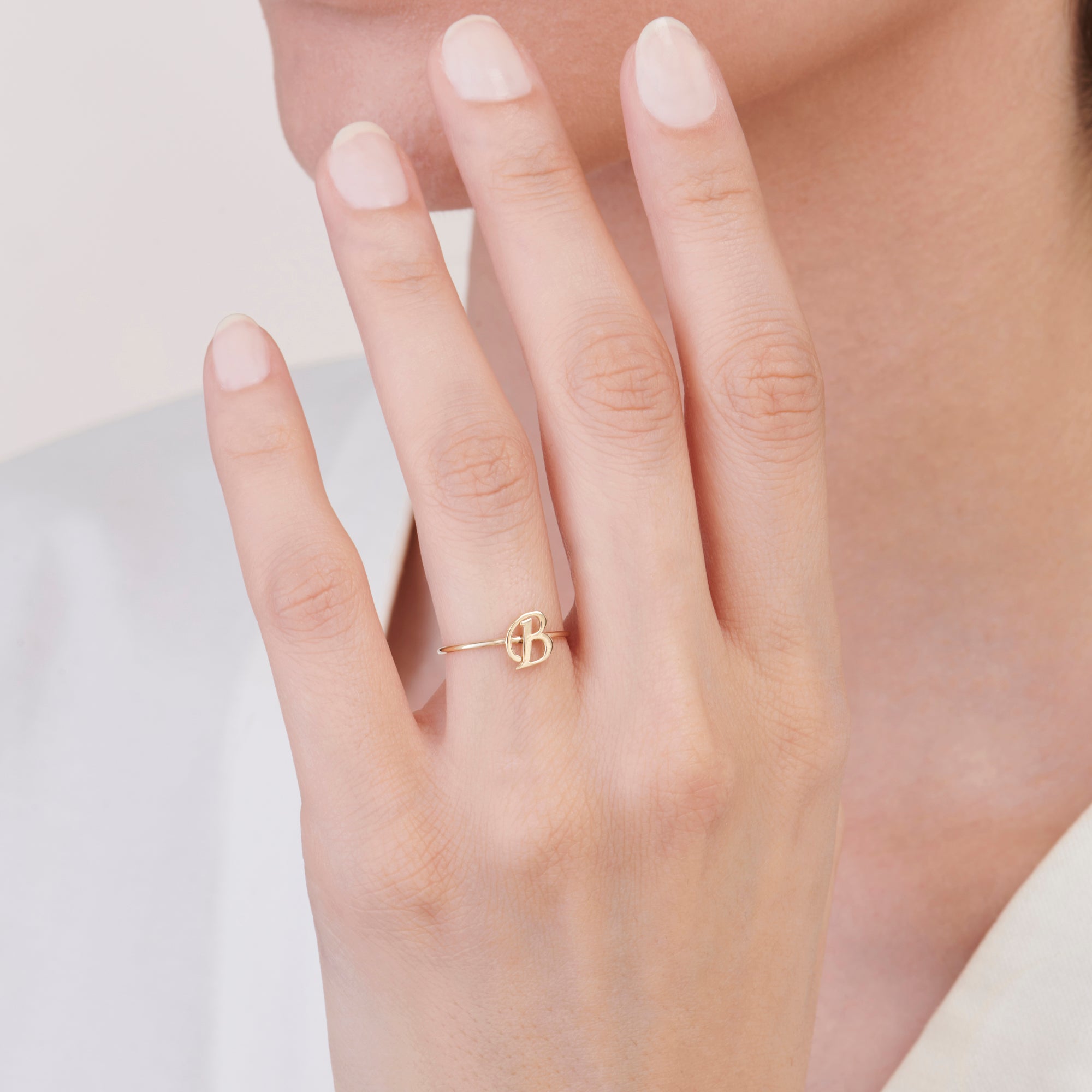 Letter B Gold Ring - 0,67 gr | 14K is backordered and will ship as soon as it is back in stock.