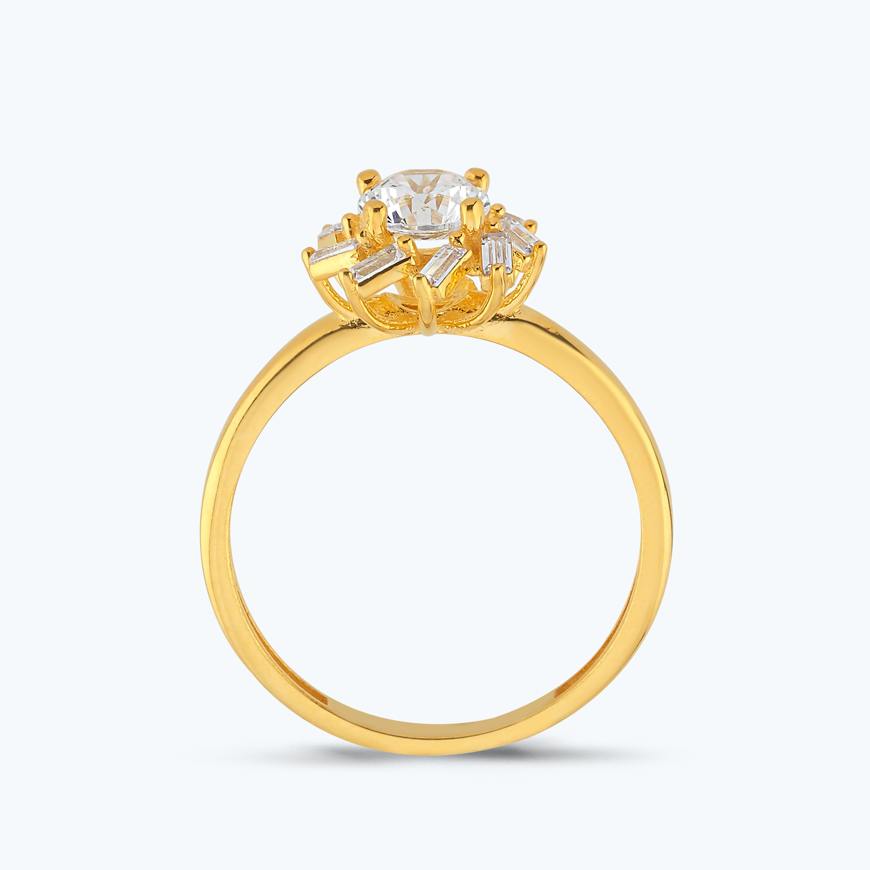 22K Baguette Gold Ring with Windrose